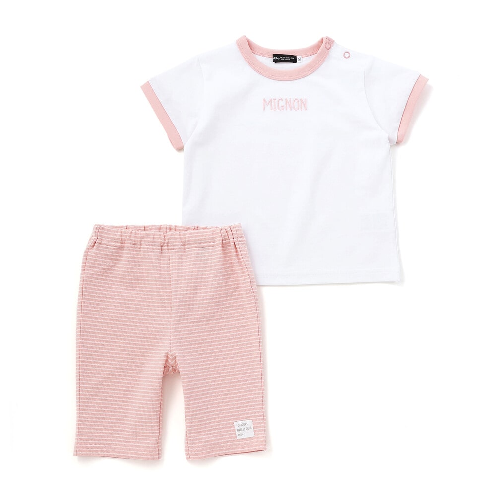 | 素材 | 【Tシャツ】(本体)綿100% (リブ)綿69% ポリエステル31% 【パンツ】綿73% ポリエステル17% レーヨン8% ポリウレタン2% |