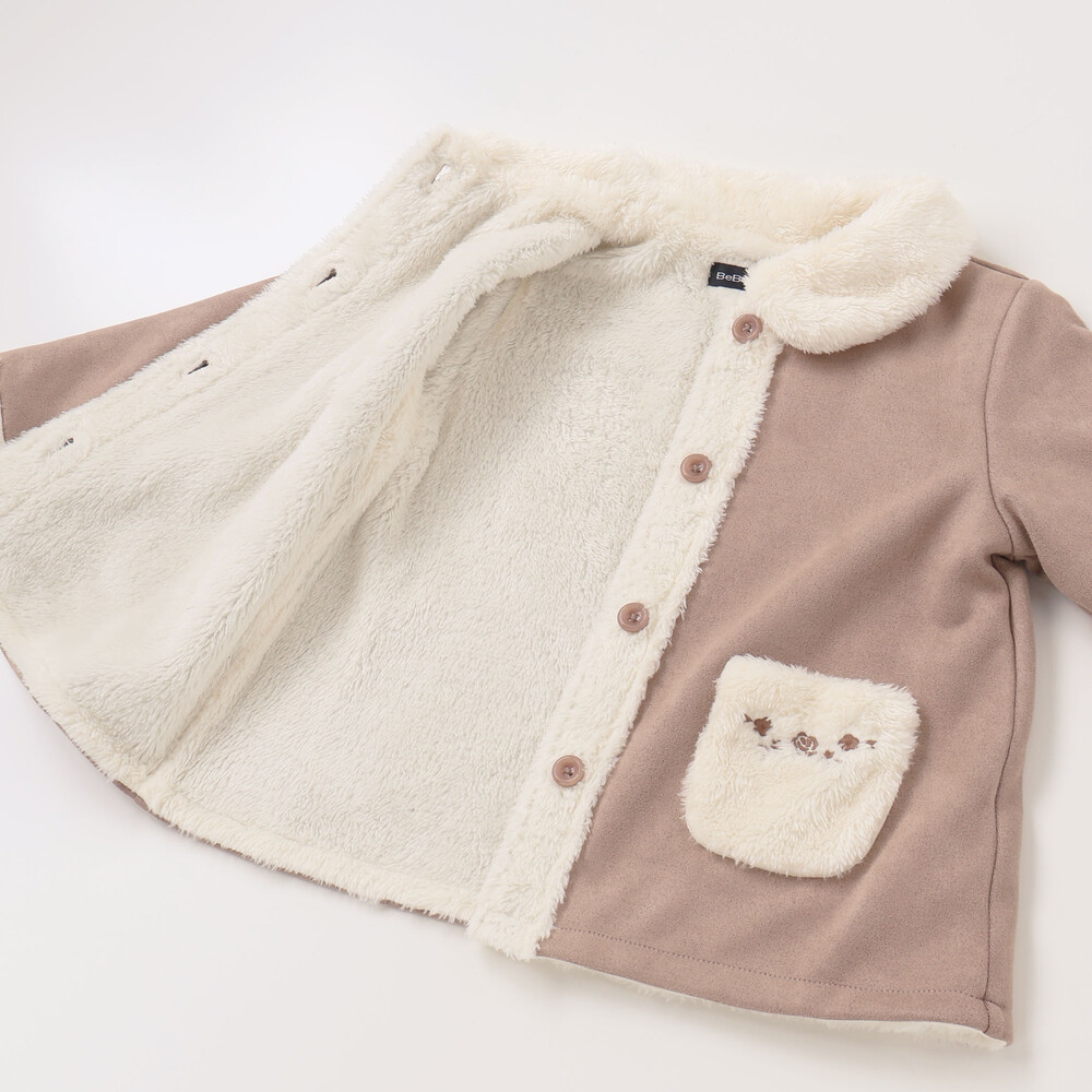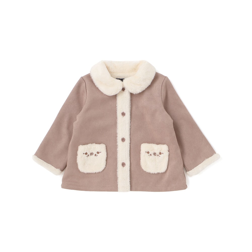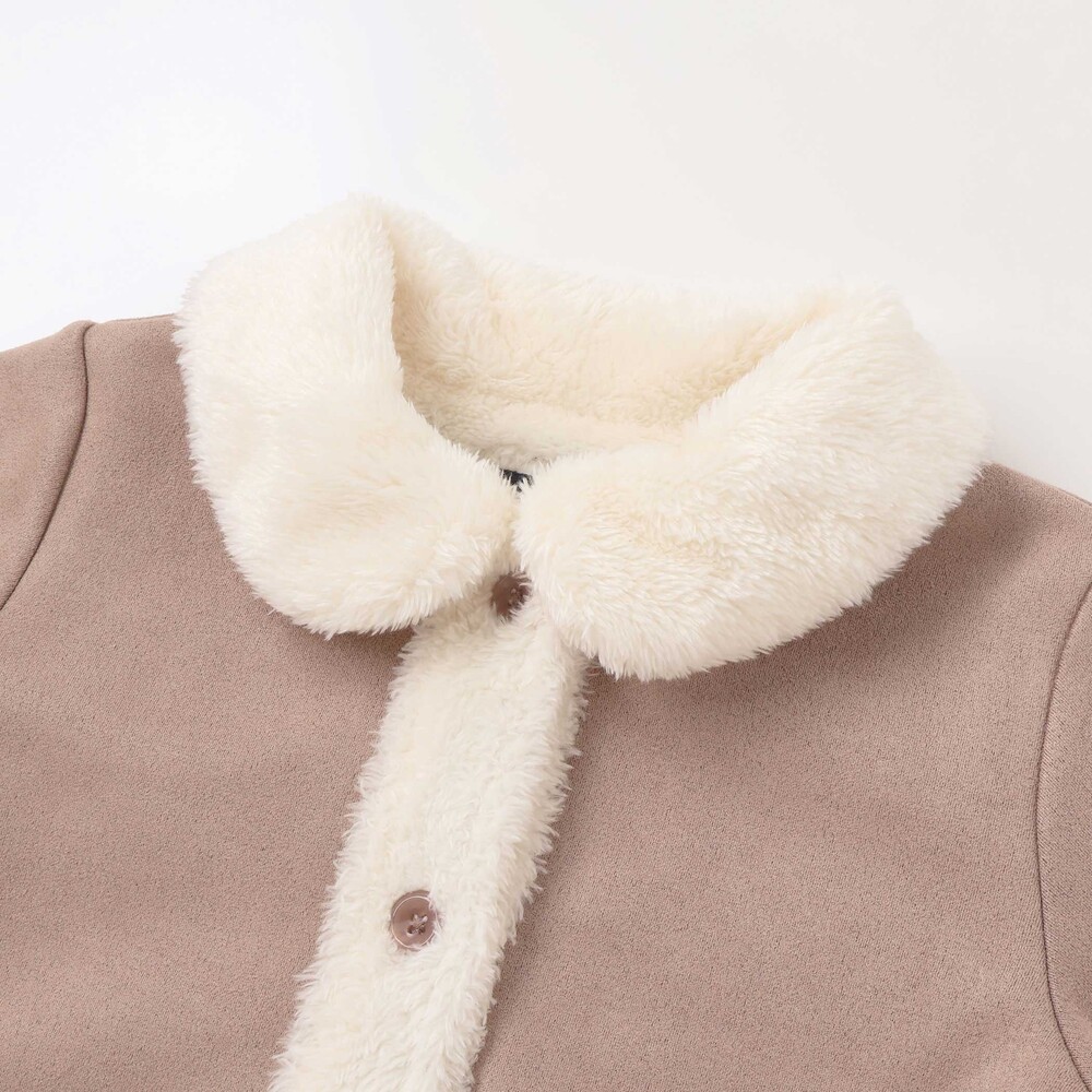 スウェード調の生地ととボアを切り替えた冬らしい素材感がかわいいコート。
