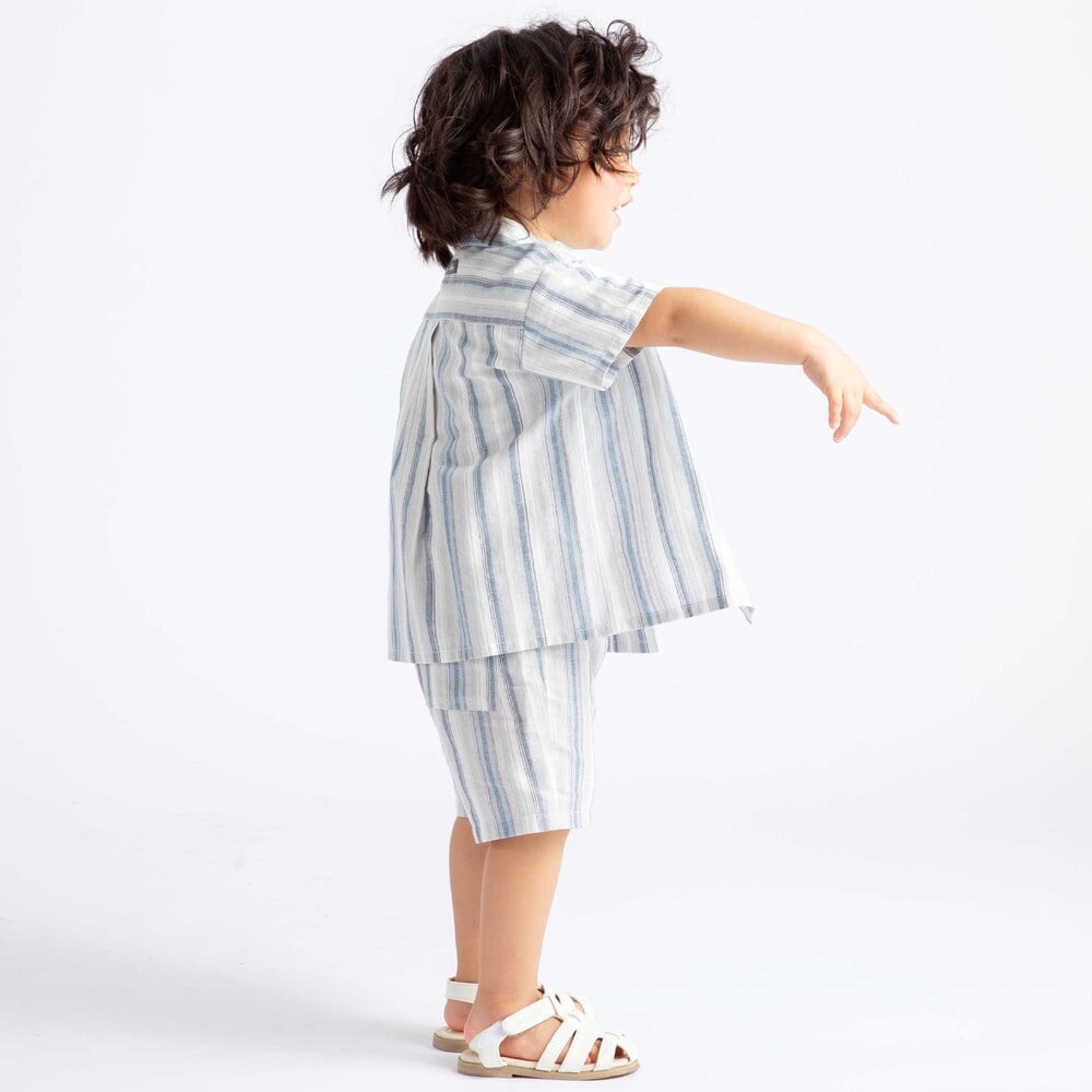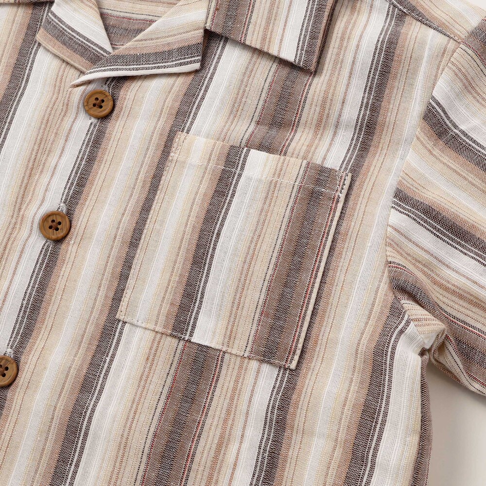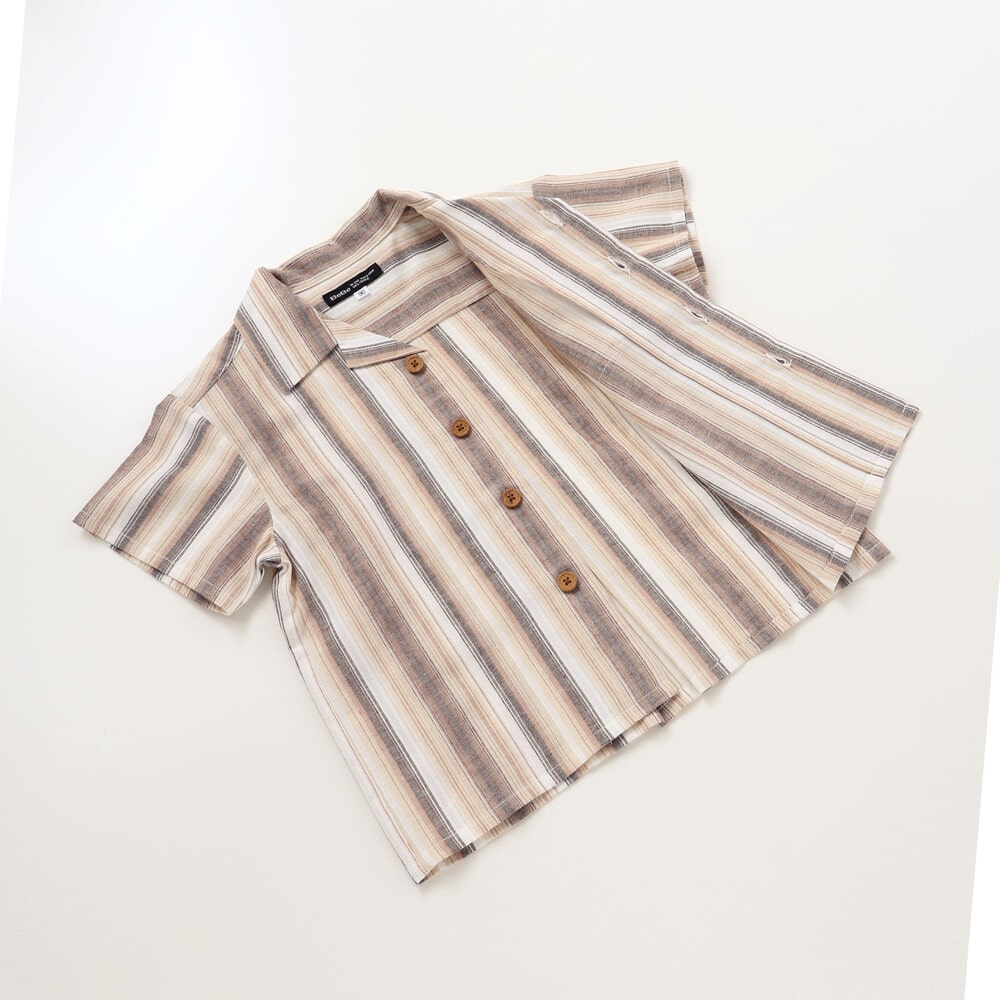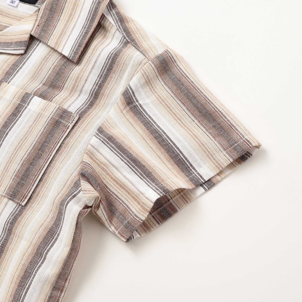 ナチュラルな風合いのマルチストライプ生地が爽やかな半袖シャツ。