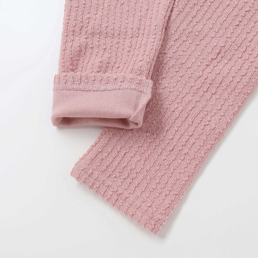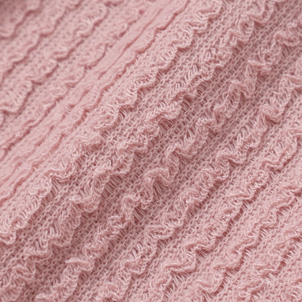 ふんわりとした質感がやさしい細かなケーブル編みのジャガード生地を使用。