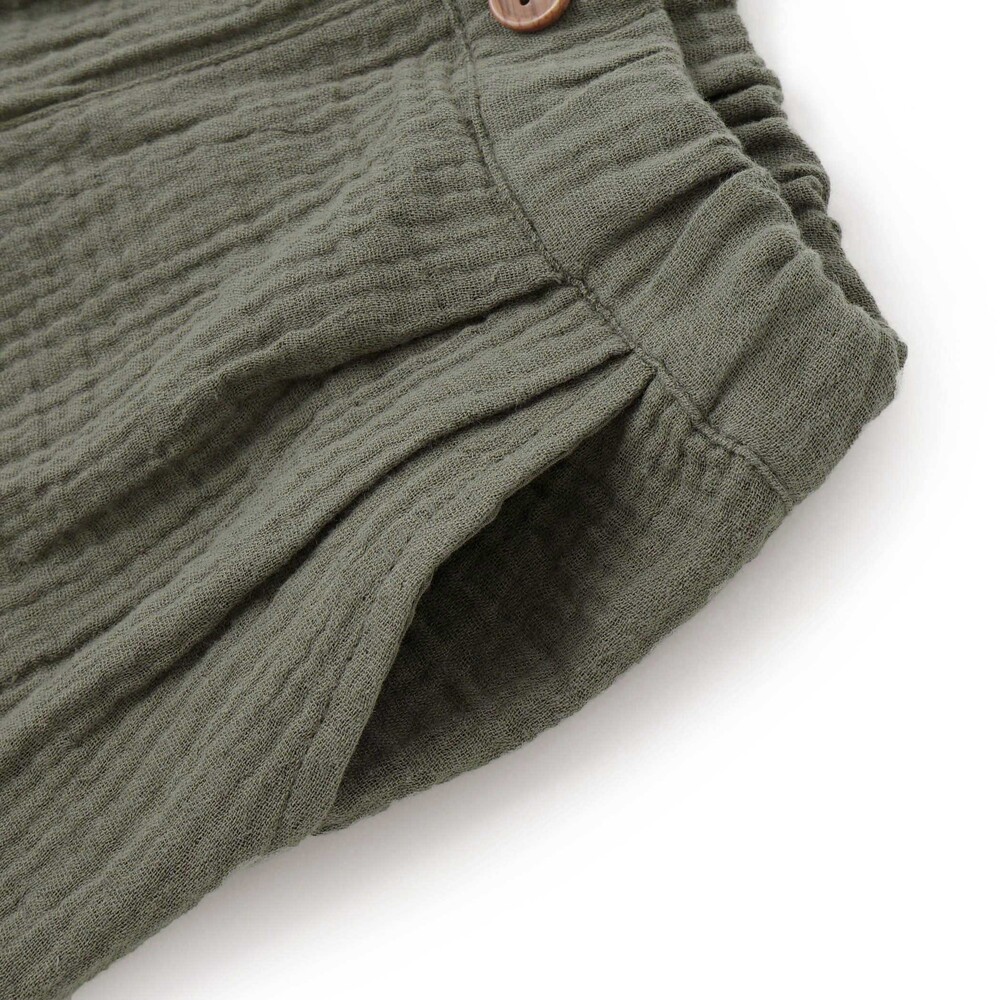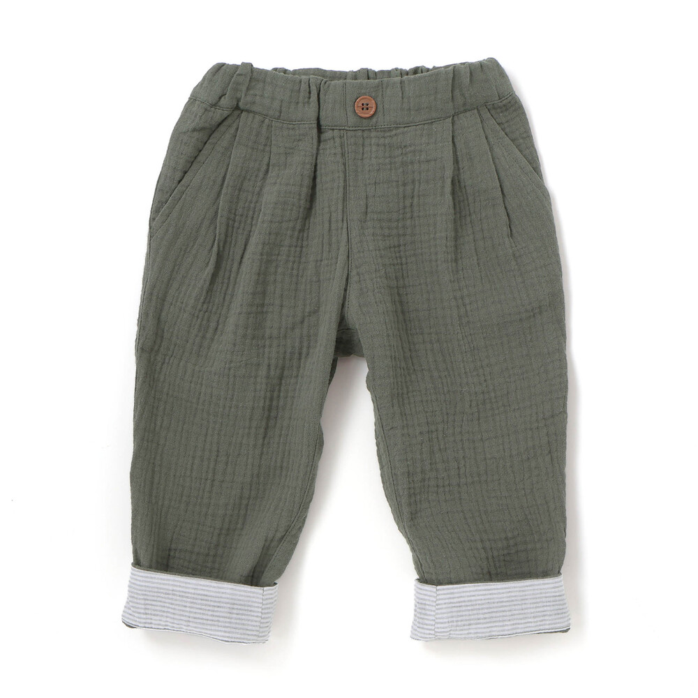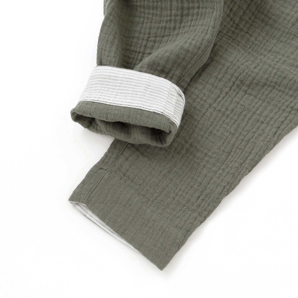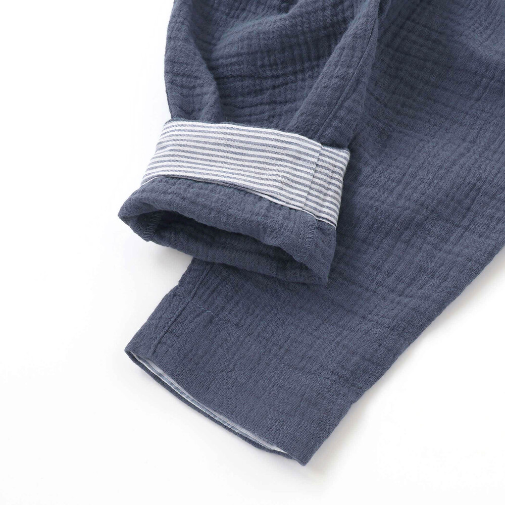 ガーゼの柔らかな風合いが暖かい季節にぴったりなロングパンツ。