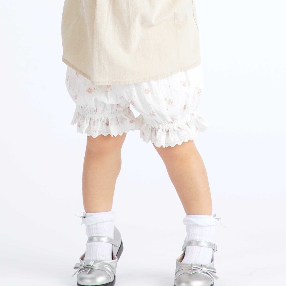 どこか懐かしさのあるクラシカルな花柄がかわいいブルマパンツ。