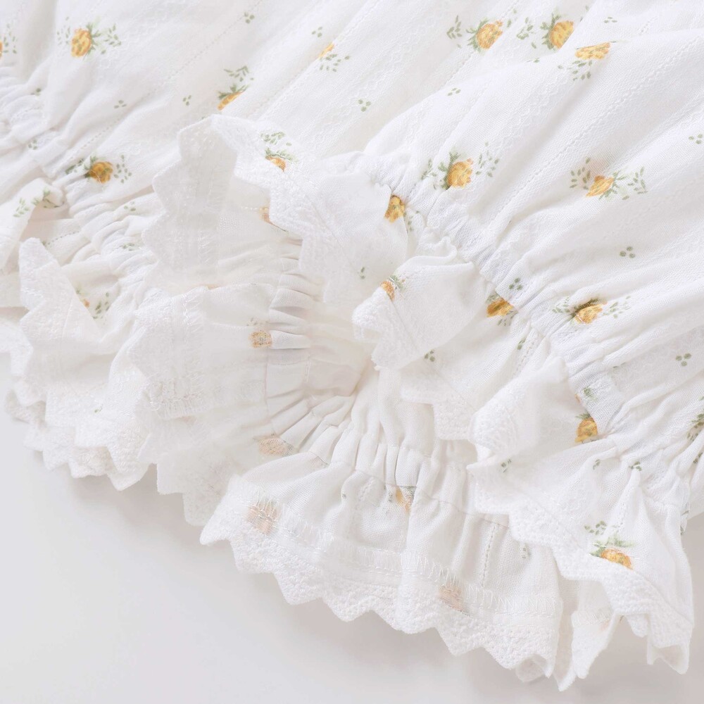 裾にボリューム感のあるフリルとレースをあわせてドロワーズのようなレトロな雰囲気に。
