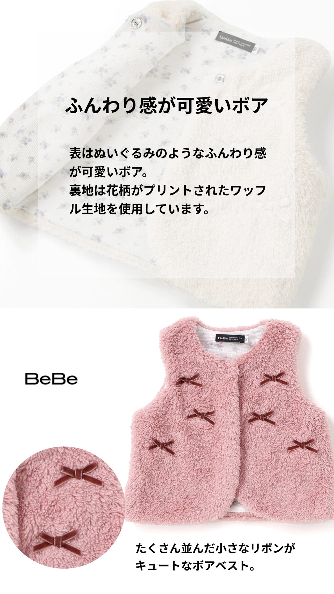 たくさん並んだ小さなリボンがキュートなボアベスト。