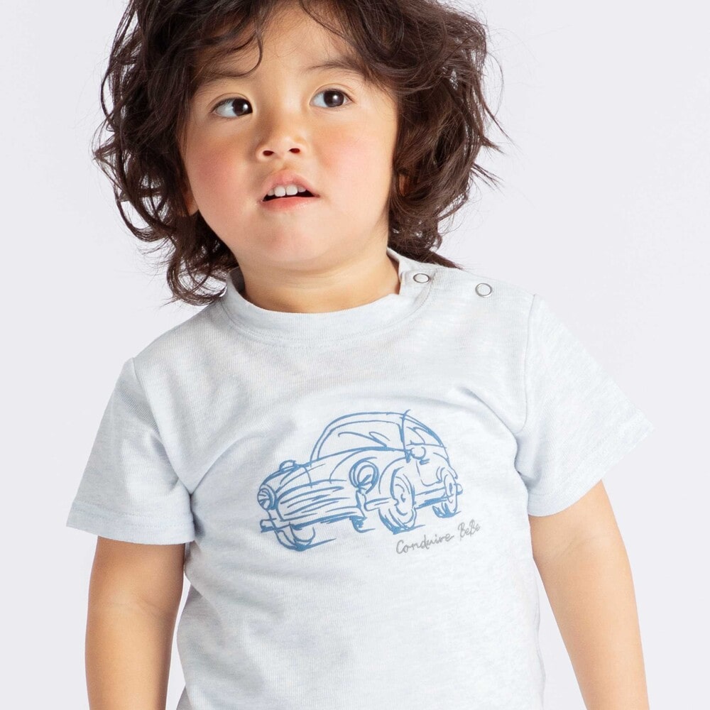発泡プリントで描いたクラシックカーがおしゃれなTシャツ。
