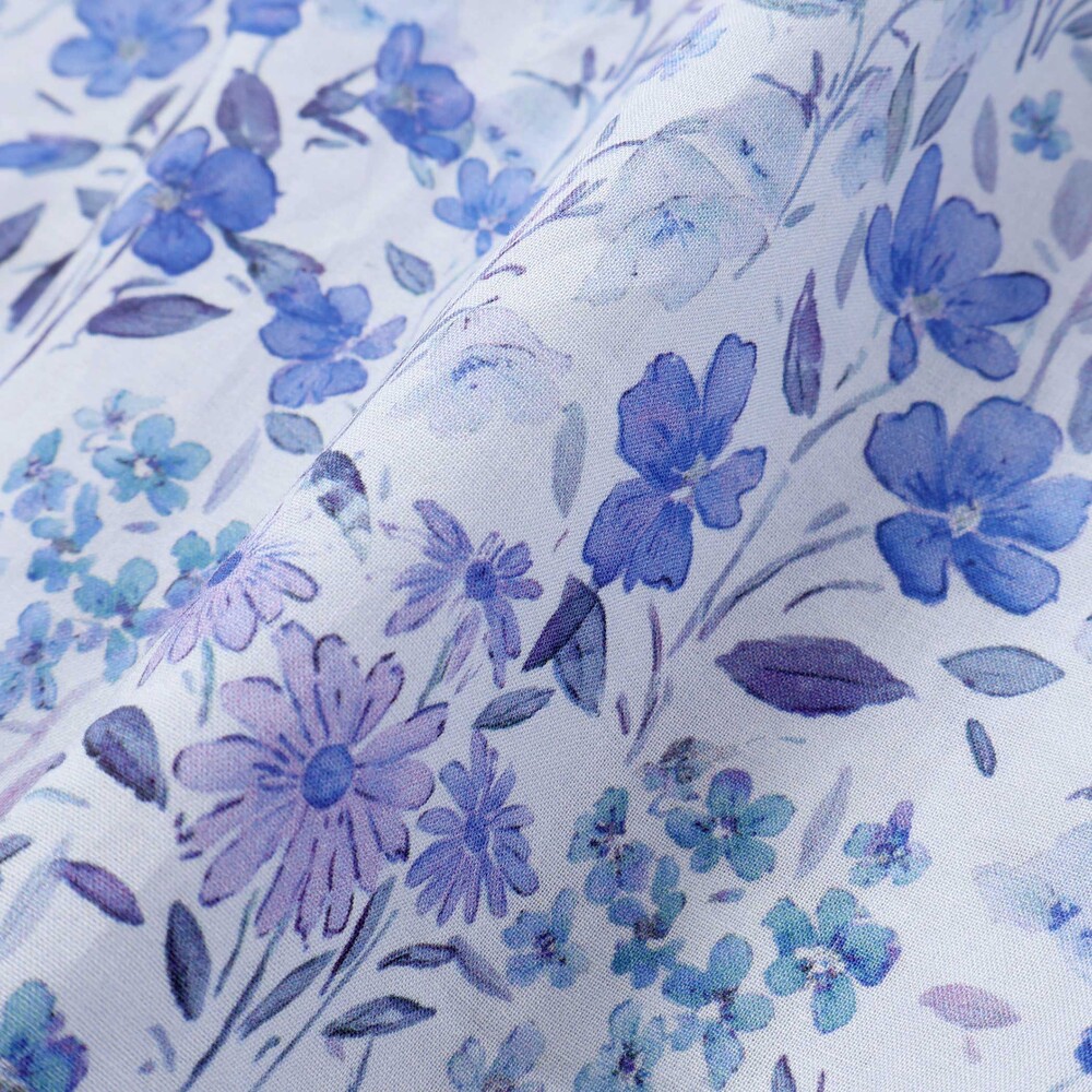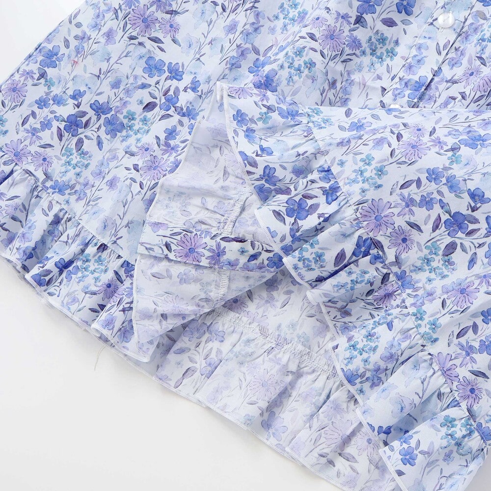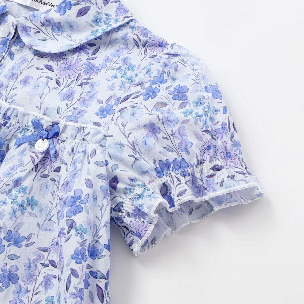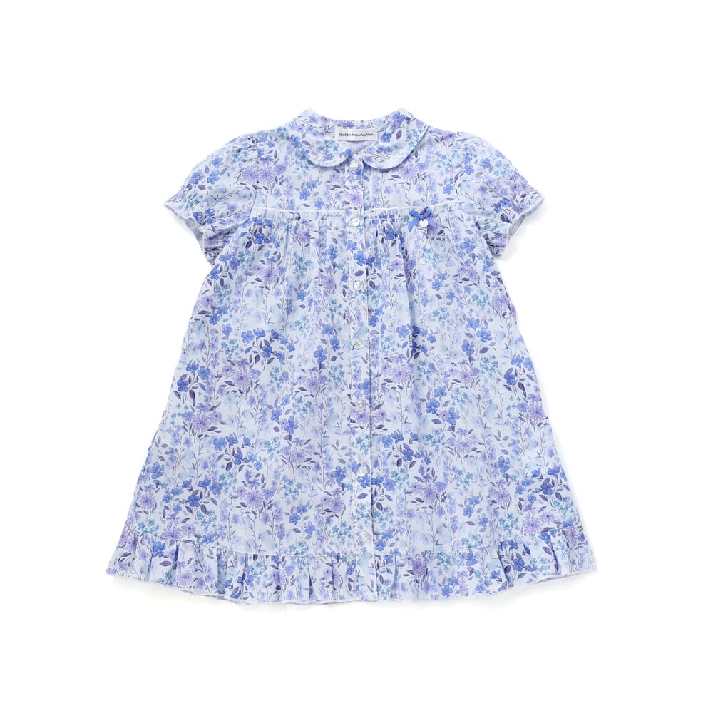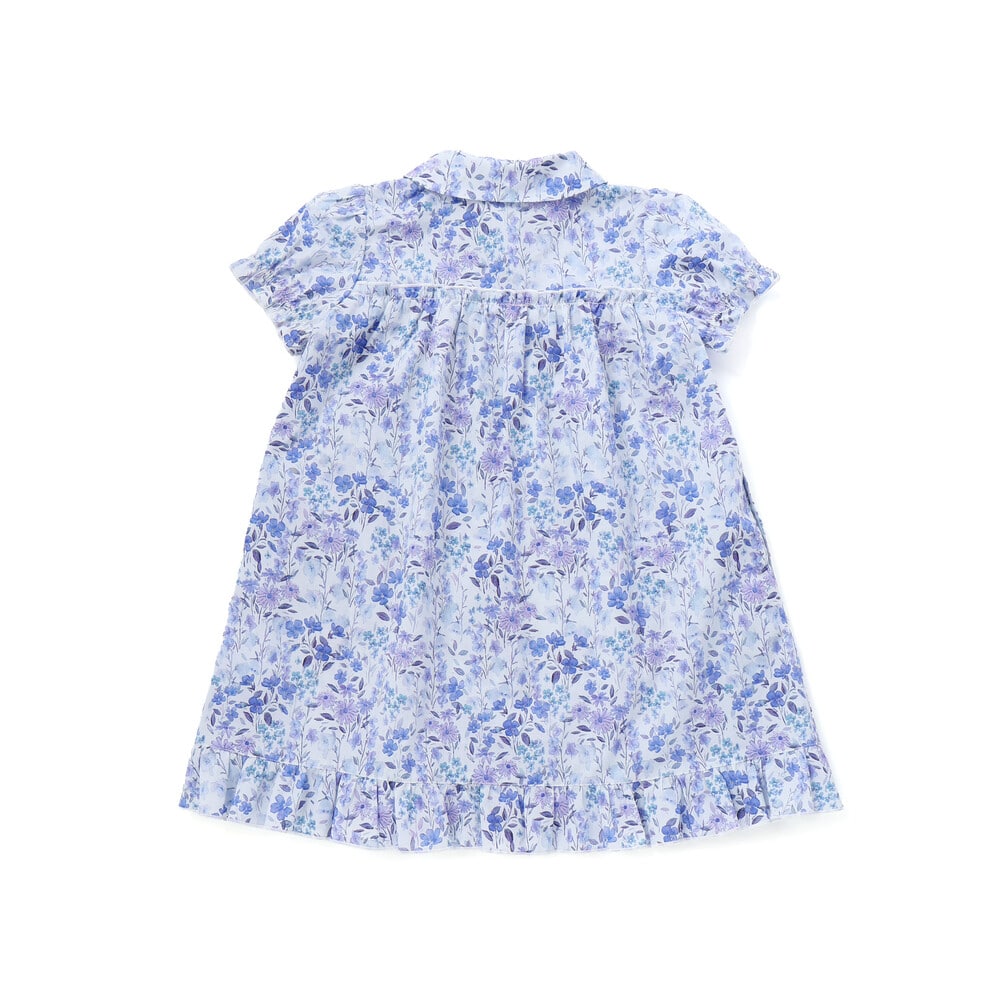 水彩画みたいな華やかな花柄が目を引く半袖ワンピース。