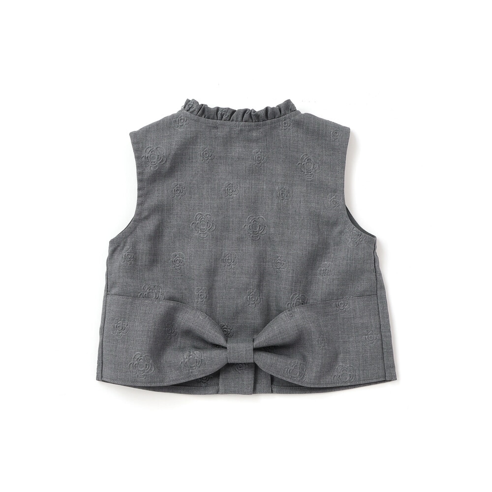 襟元にはフリルをあしらい、お顔まわりも華やかな印象に。