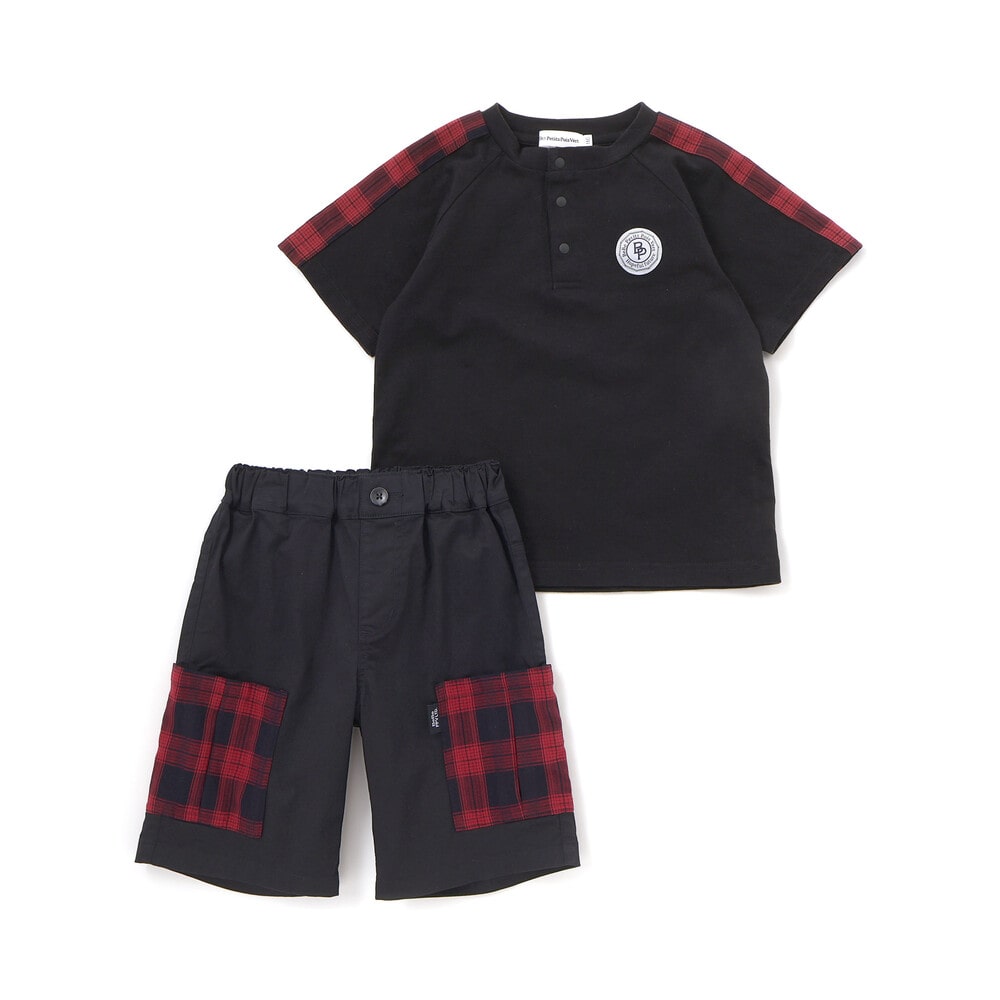 チェック切り替えでかっこよく決まる男の子用セットアップ。