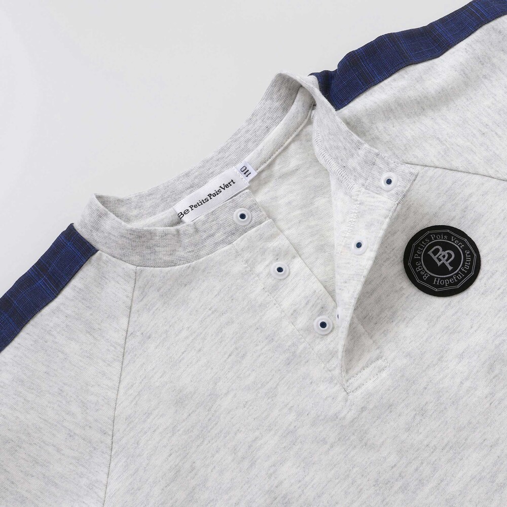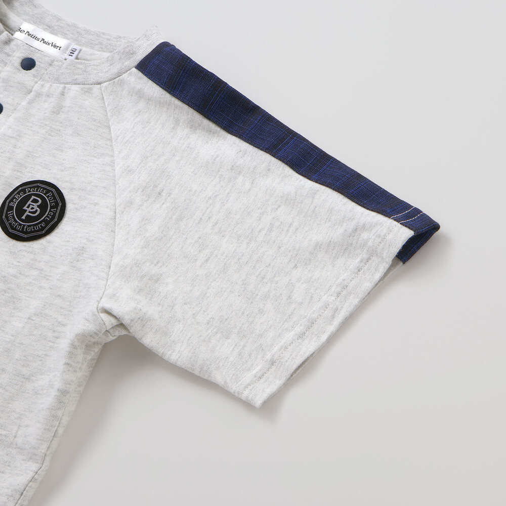 胸元にはハーフボタンを配置し、Tシャツの気軽さはそのままに、少しきちんと見える印象をプラスしています。