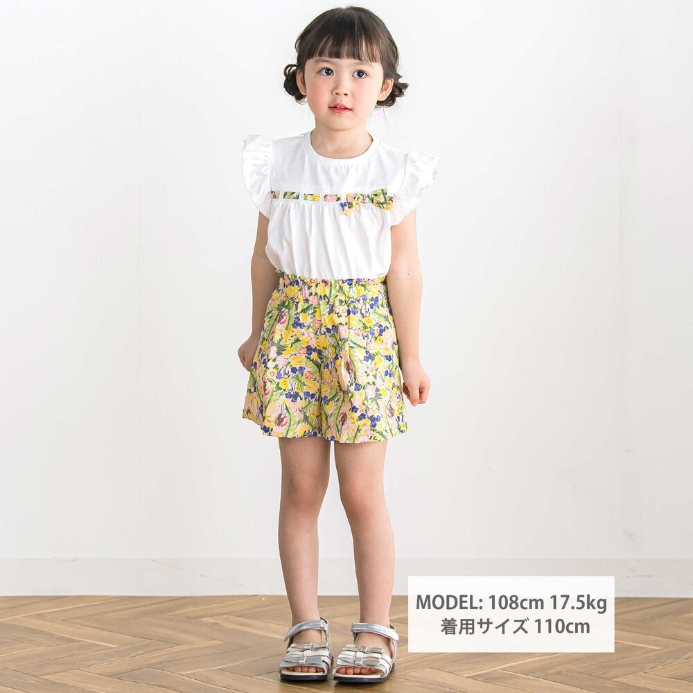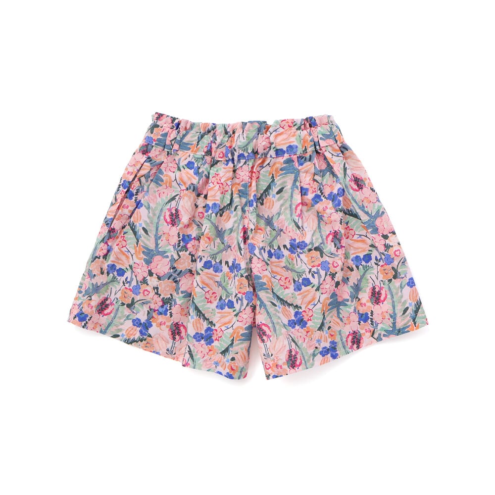 ショートパンツは華やかなフラワープリントで、コーデのポイントになります。