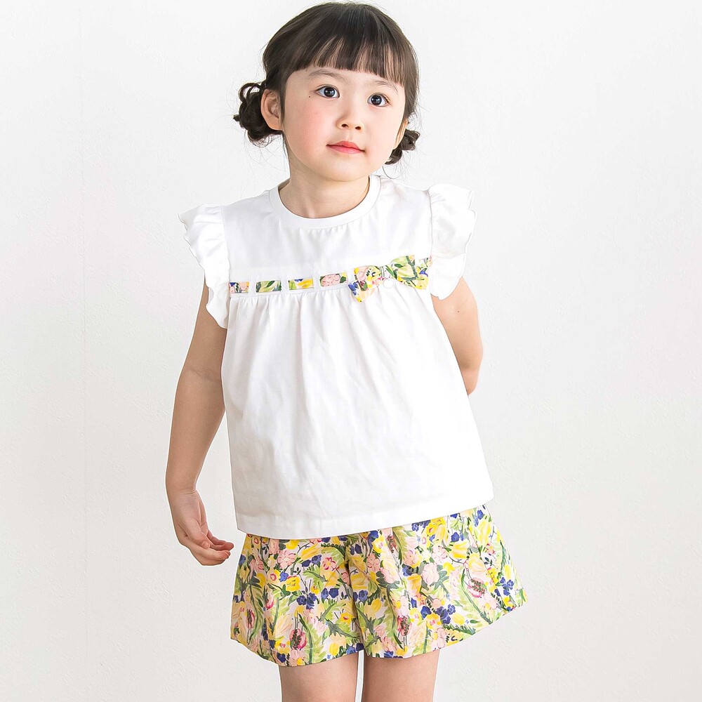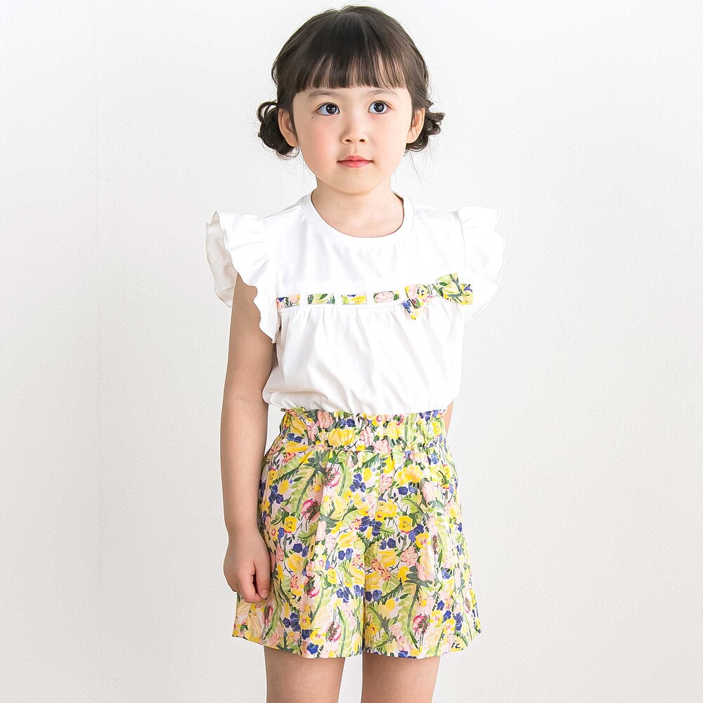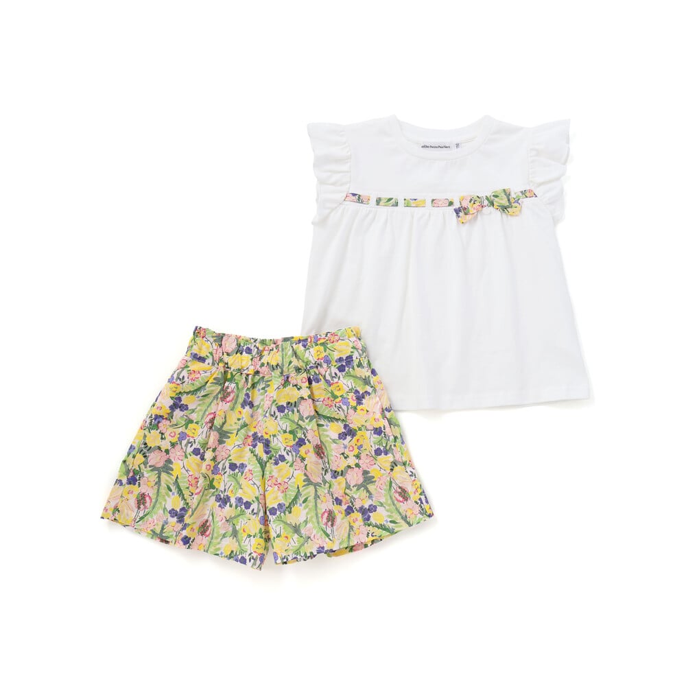 フリルと花柄で楽しむ、軽やかな夏のセットアップ。