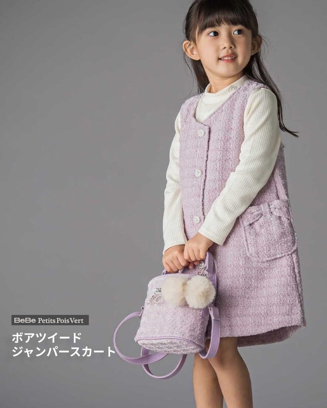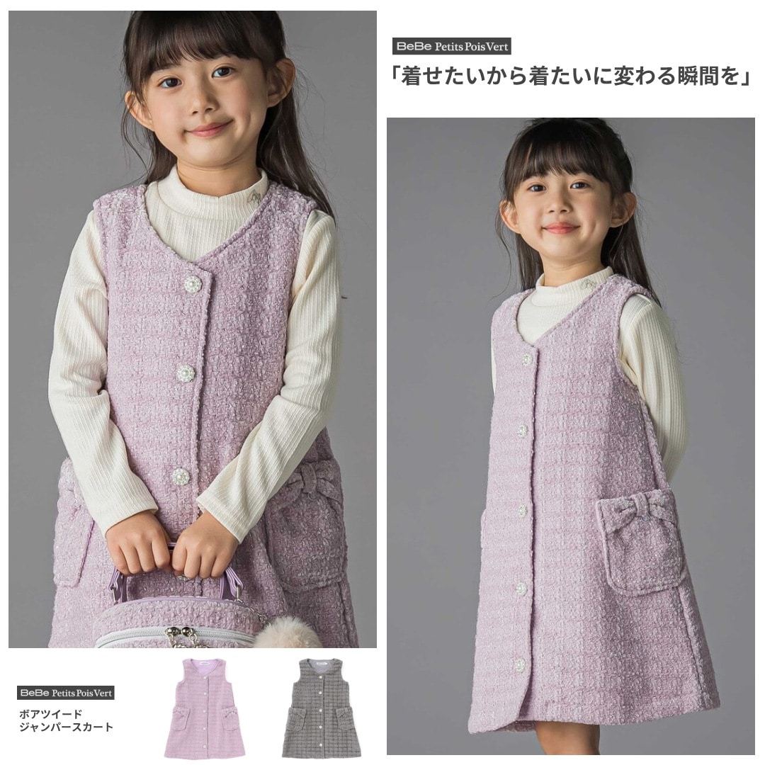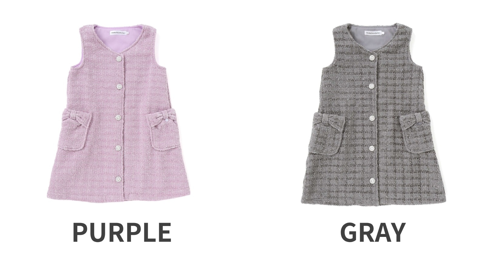 上品な質感とディテールが光る、華やかなボアツイードのジャンパースカート。