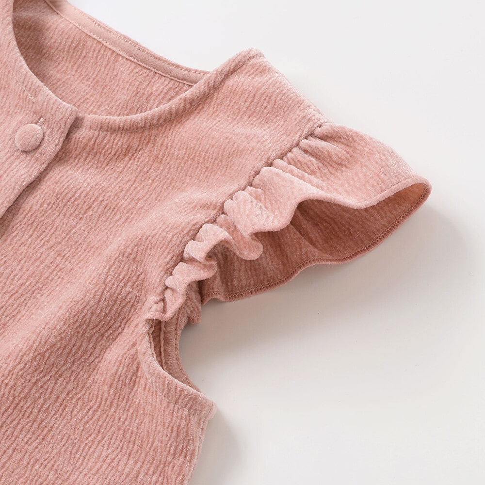 袖のフリルが動きに合わせて揺れ、女の子らしさを引き立てます。
