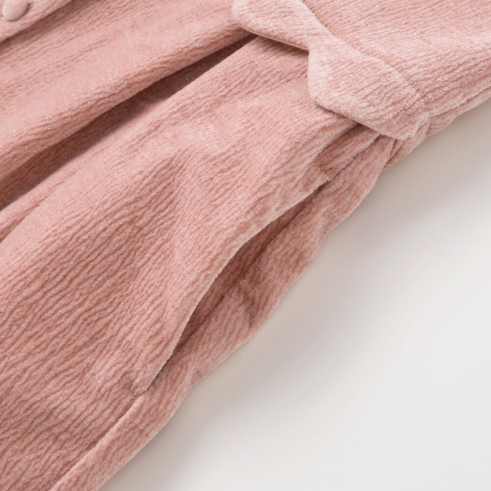 織り柄による立体感と、起毛加工による柔らかさが融合し、秋冬の装いにぴったりの素材感です。