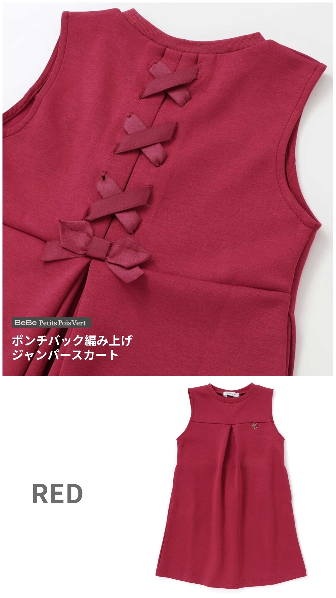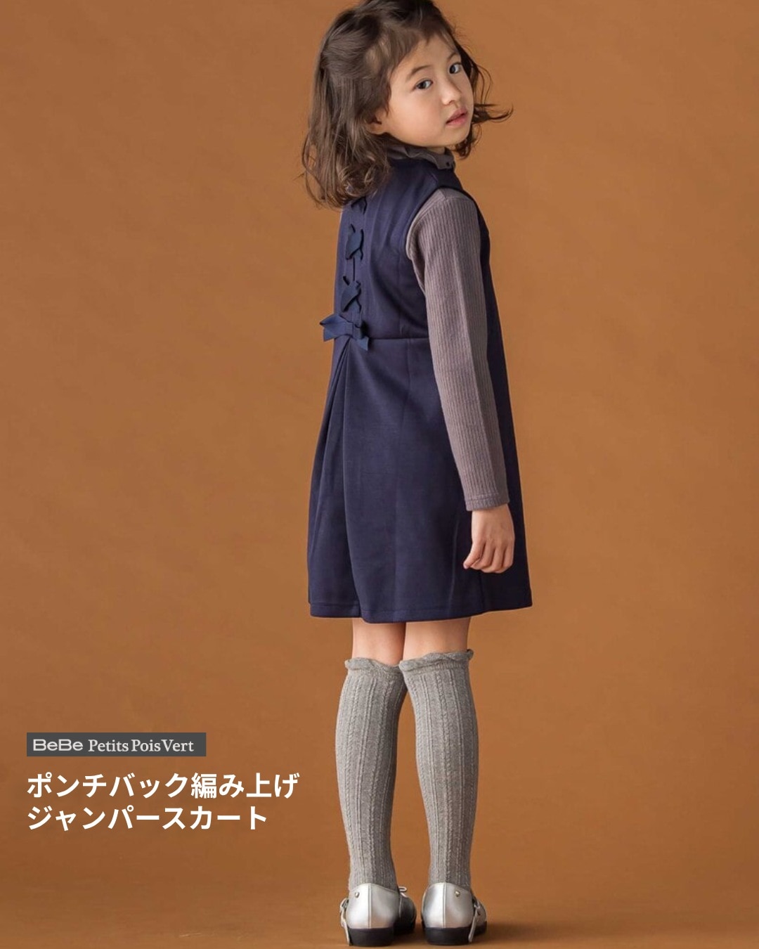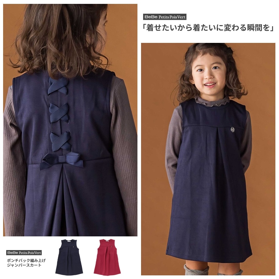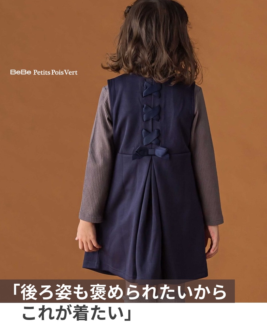 後ろ姿まで可愛い、編み上げリボンのジャンパースカート。