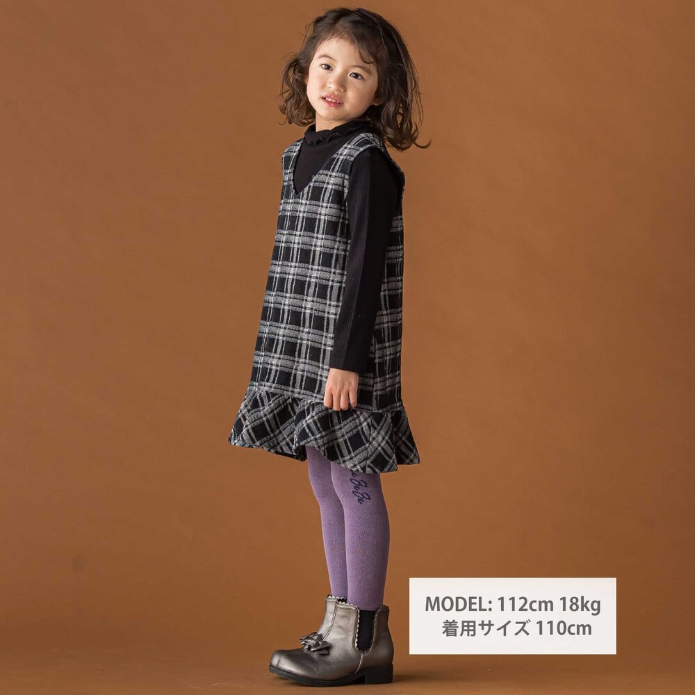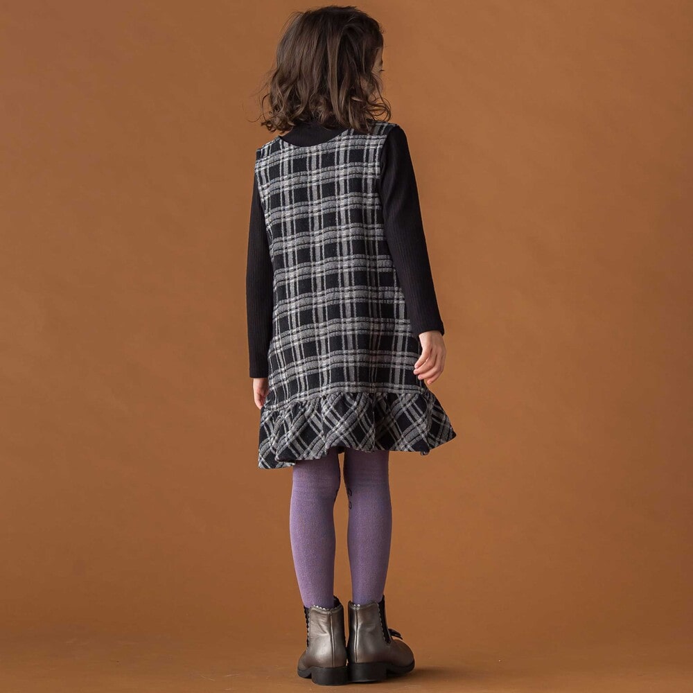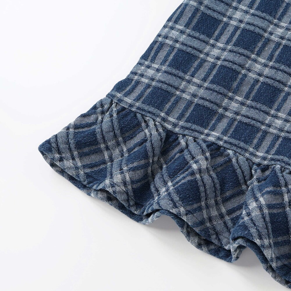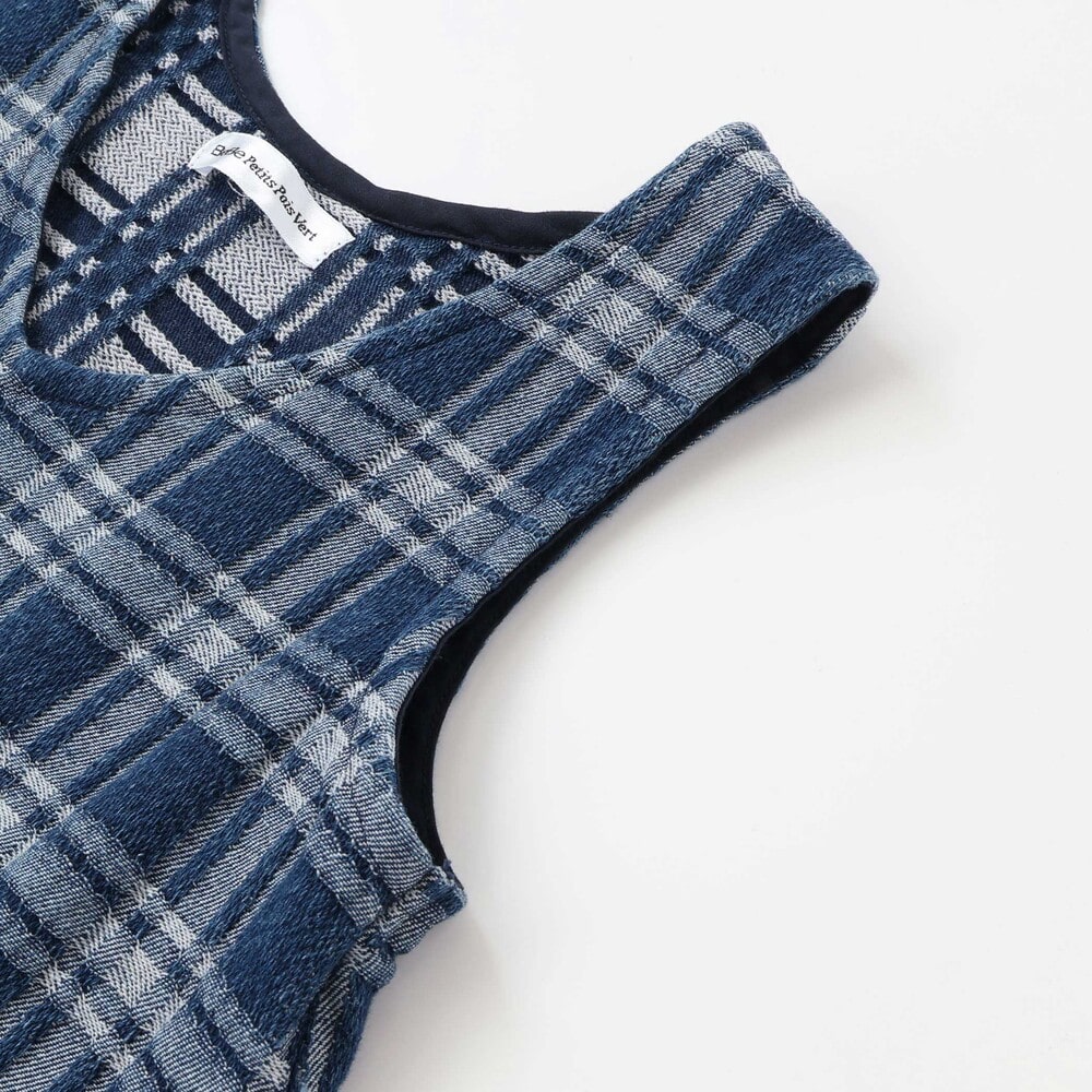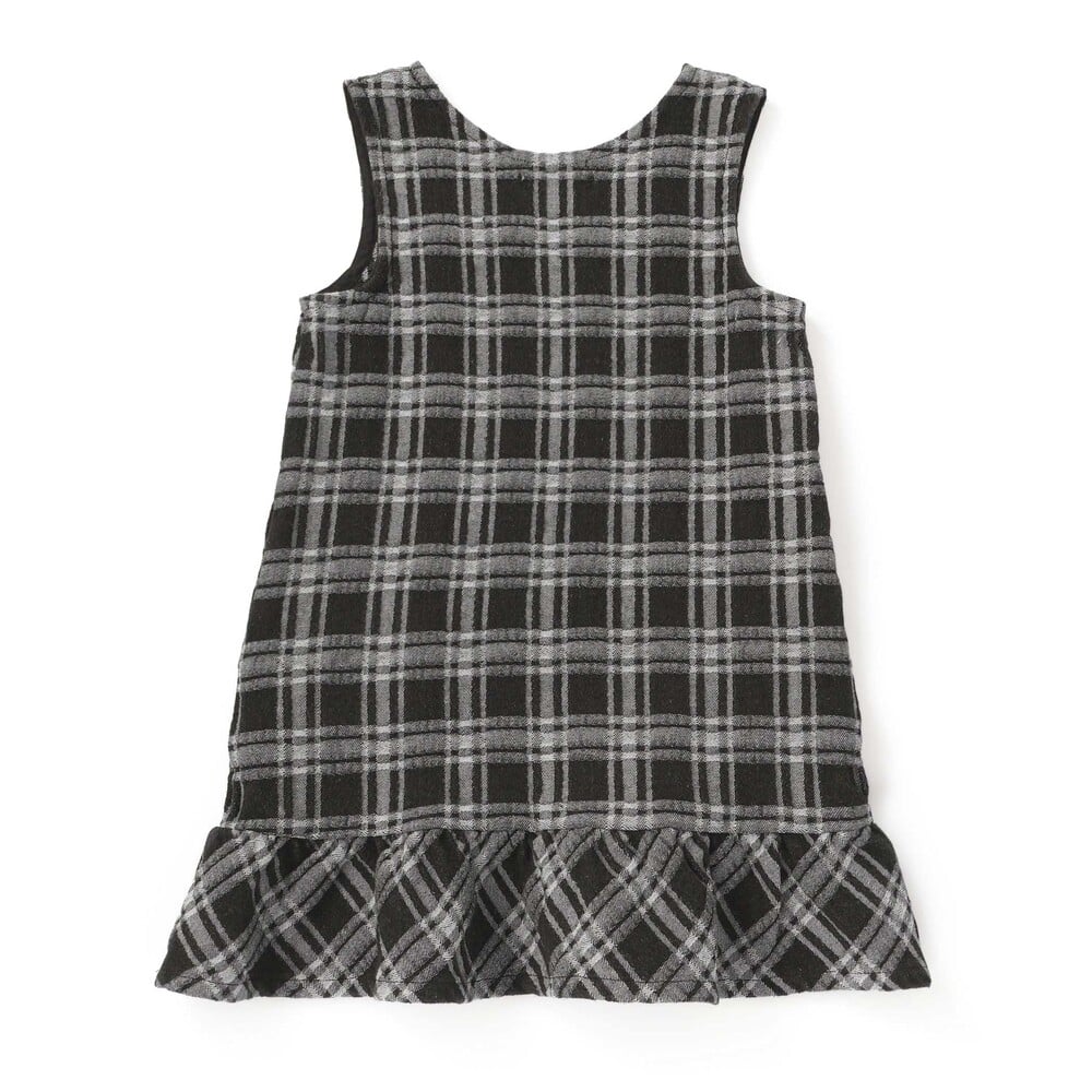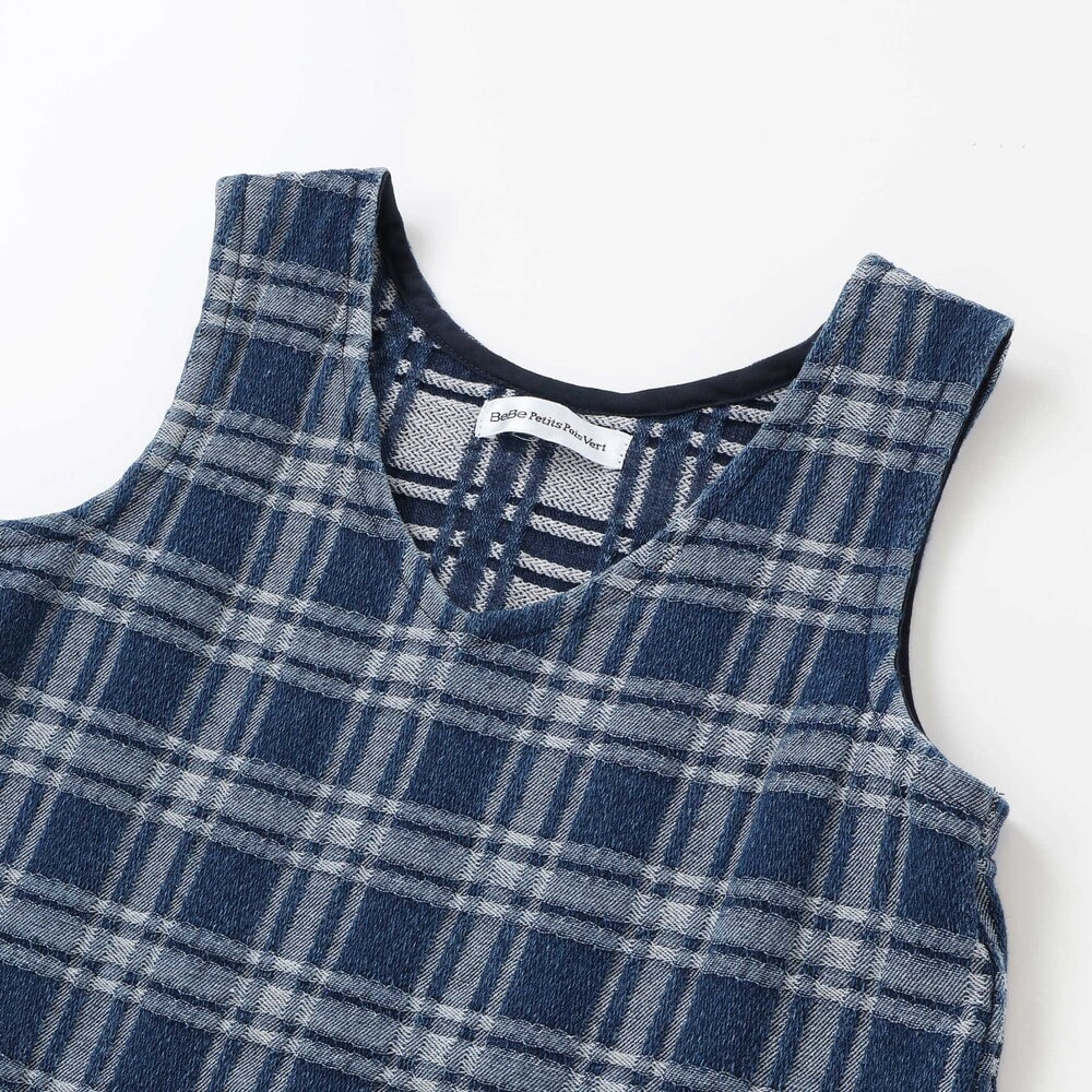 生地のポコポコ質感が楽しい、チェックデニムのジャンパースカート。