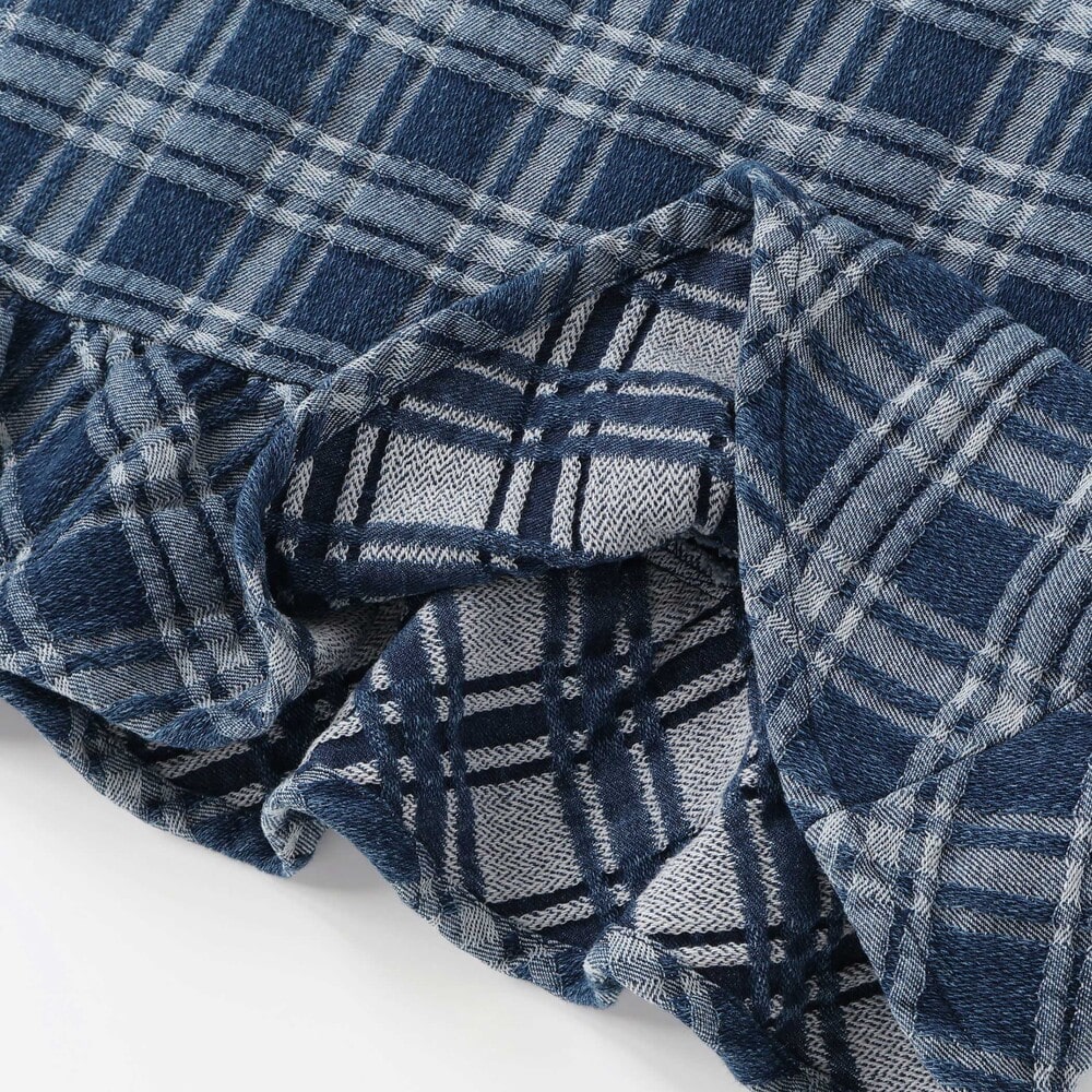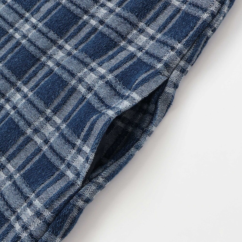 ポコポコとした凹凸のあるチェックデニム生地を使用。