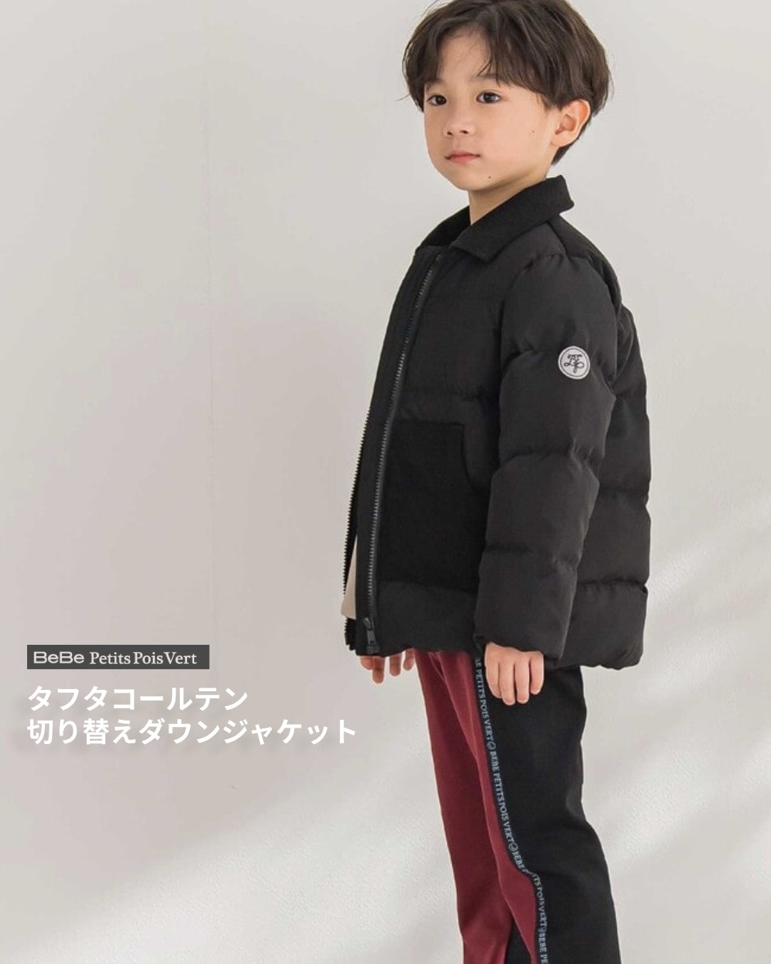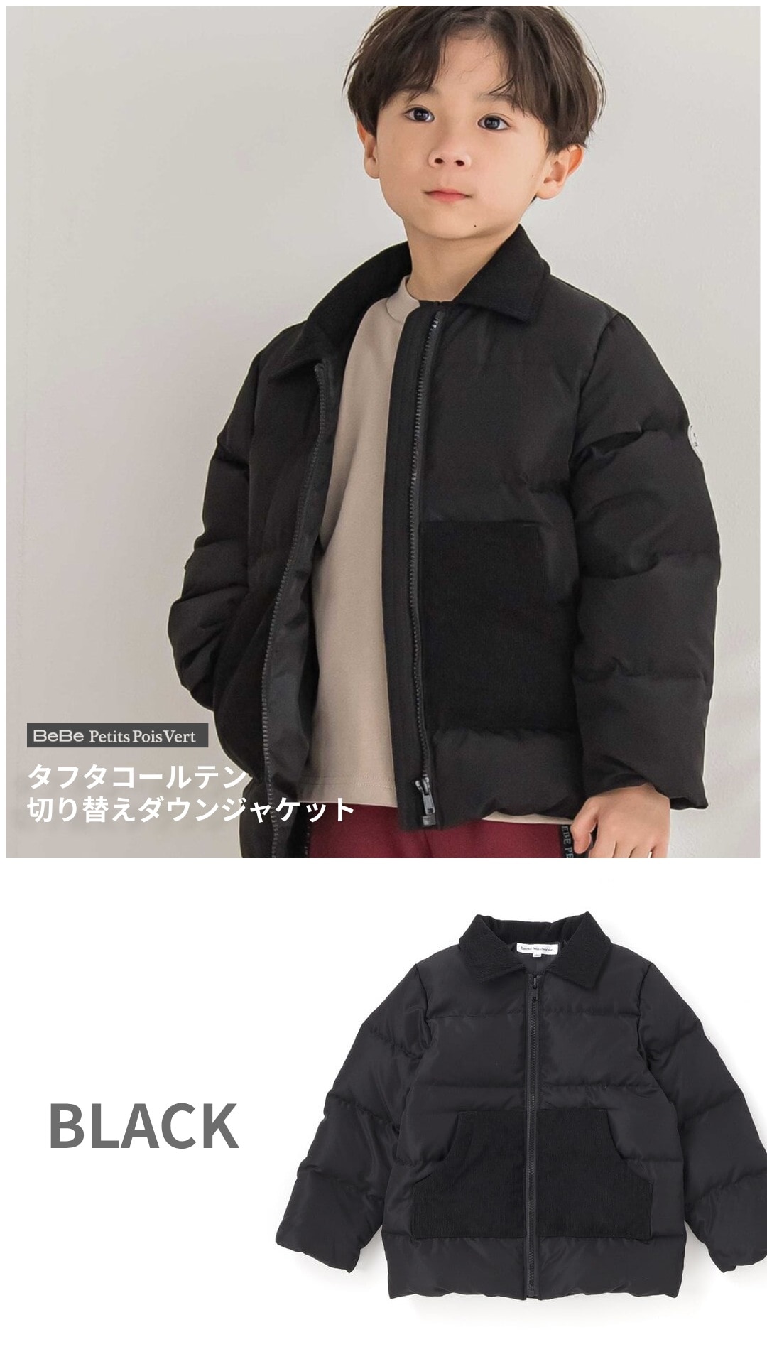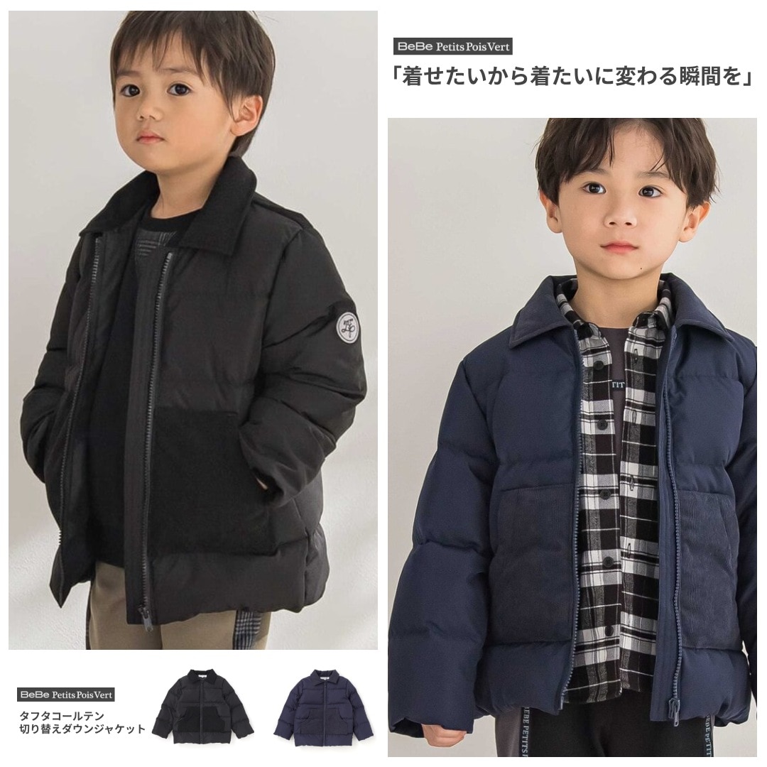 異素材切り替えが映える、あったかダウンの男の子用ジャケット。