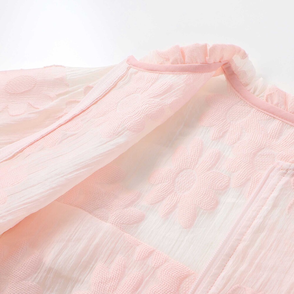 透け感のあるシアー素材を使用した軽やかな羽織りアイテム。
