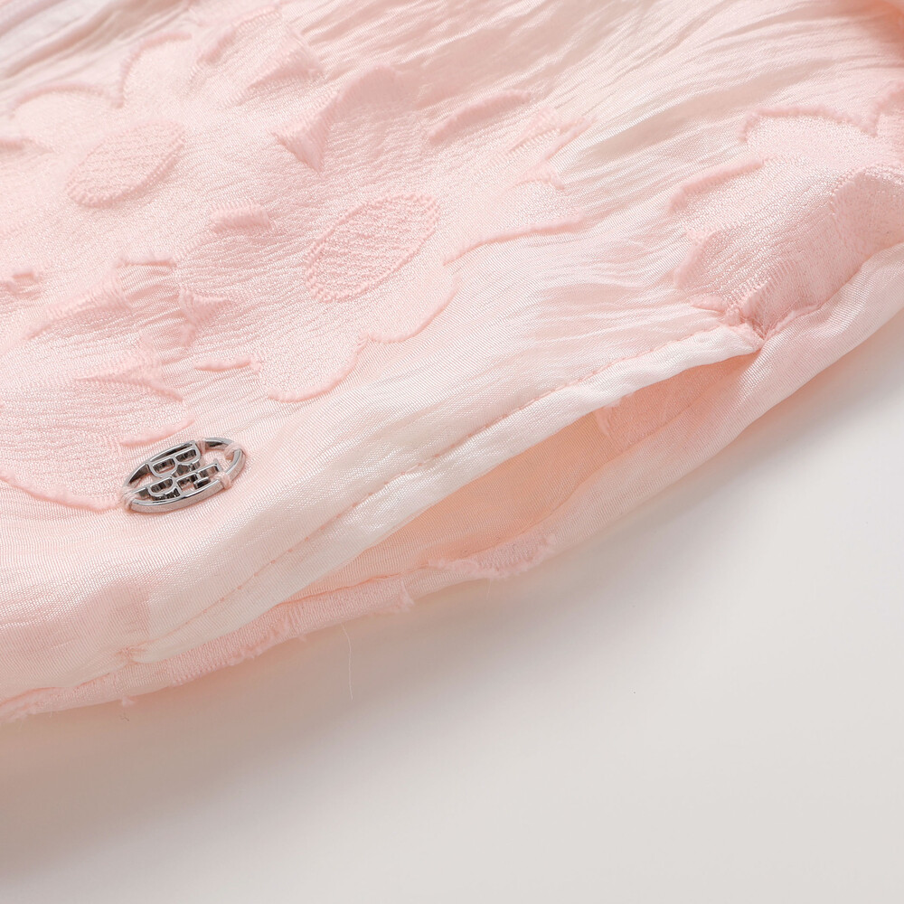 左裾にはキラリと輝くロゴメタルチャームをあしらい、さりげない高級感とブランドらしさをプラス。