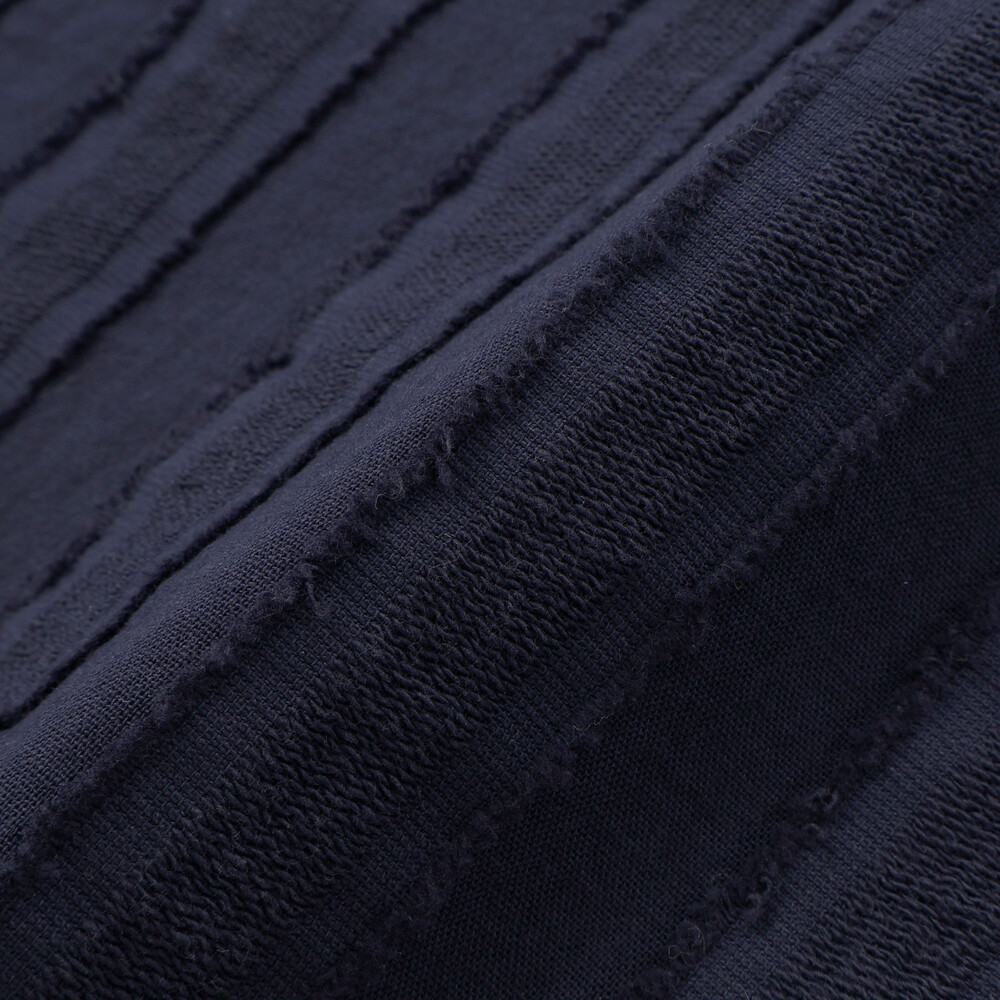 立体的なストライプ使いでスッキリ見えする1枚です。