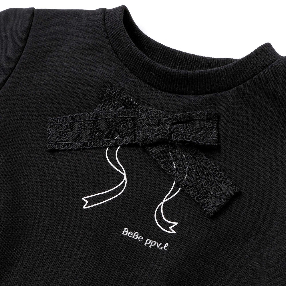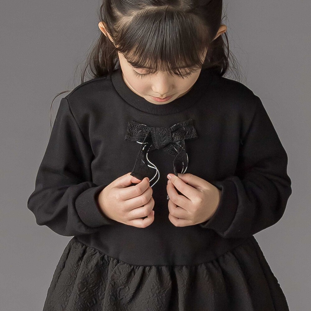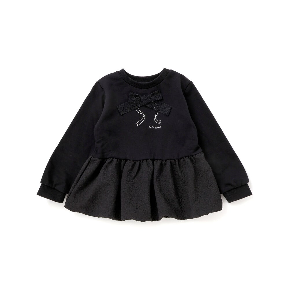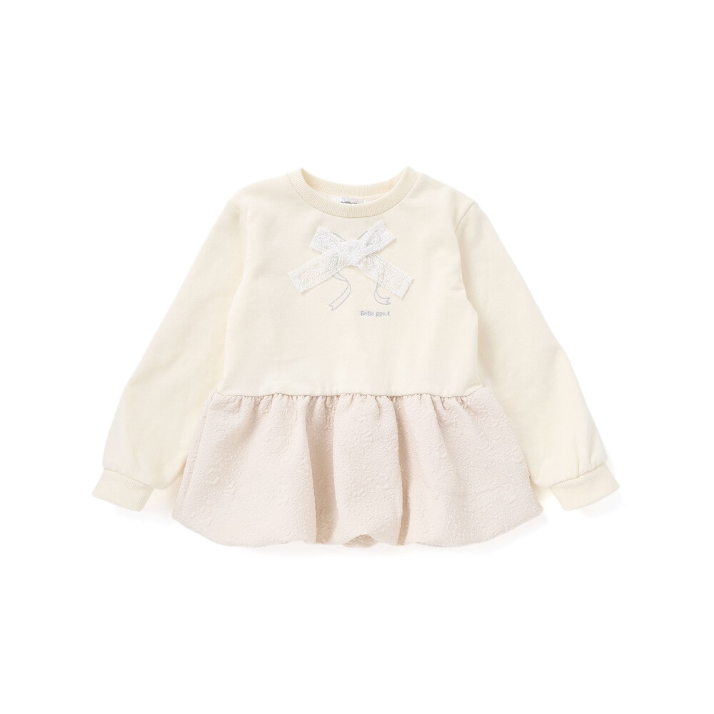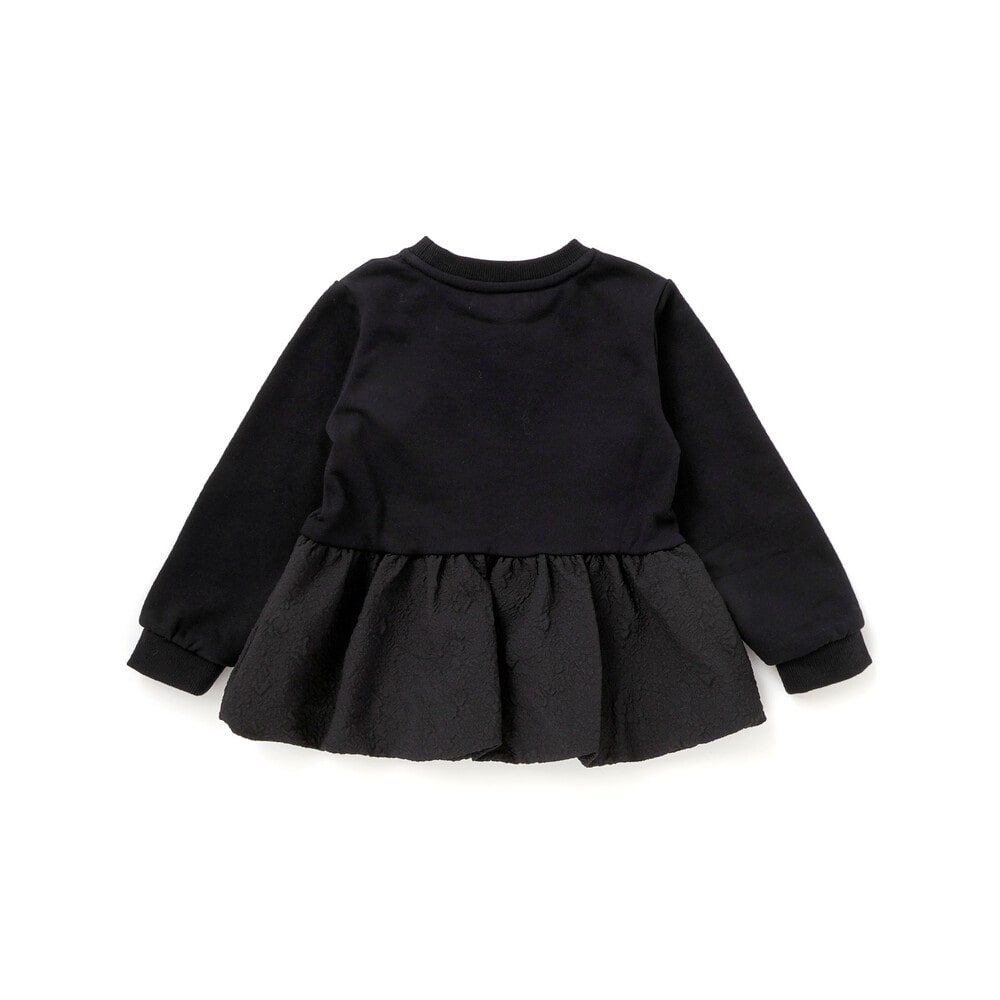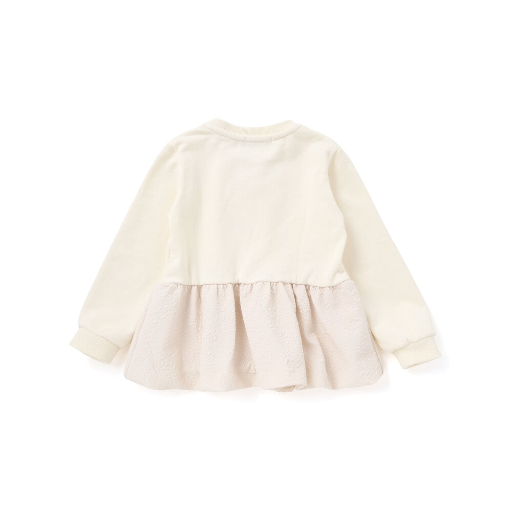 ジャガード切り替えとふんわりバルーンシルエットが華やかな女の子用トレーナー。