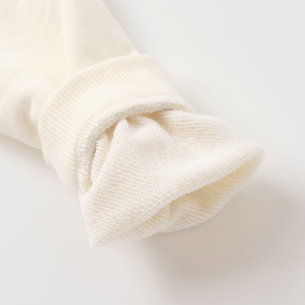 身ごろは柔らかな裏毛素材で、動きやすく快適な着心地。