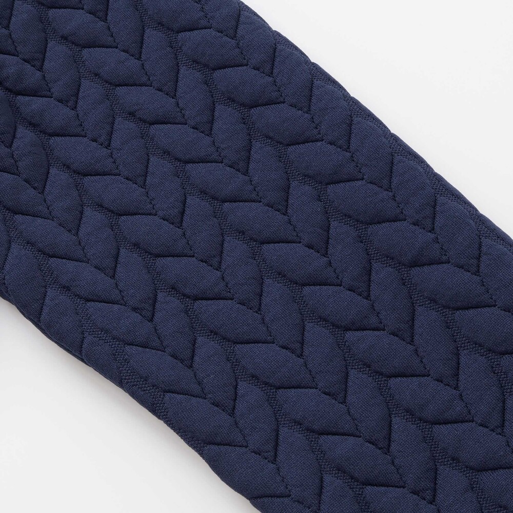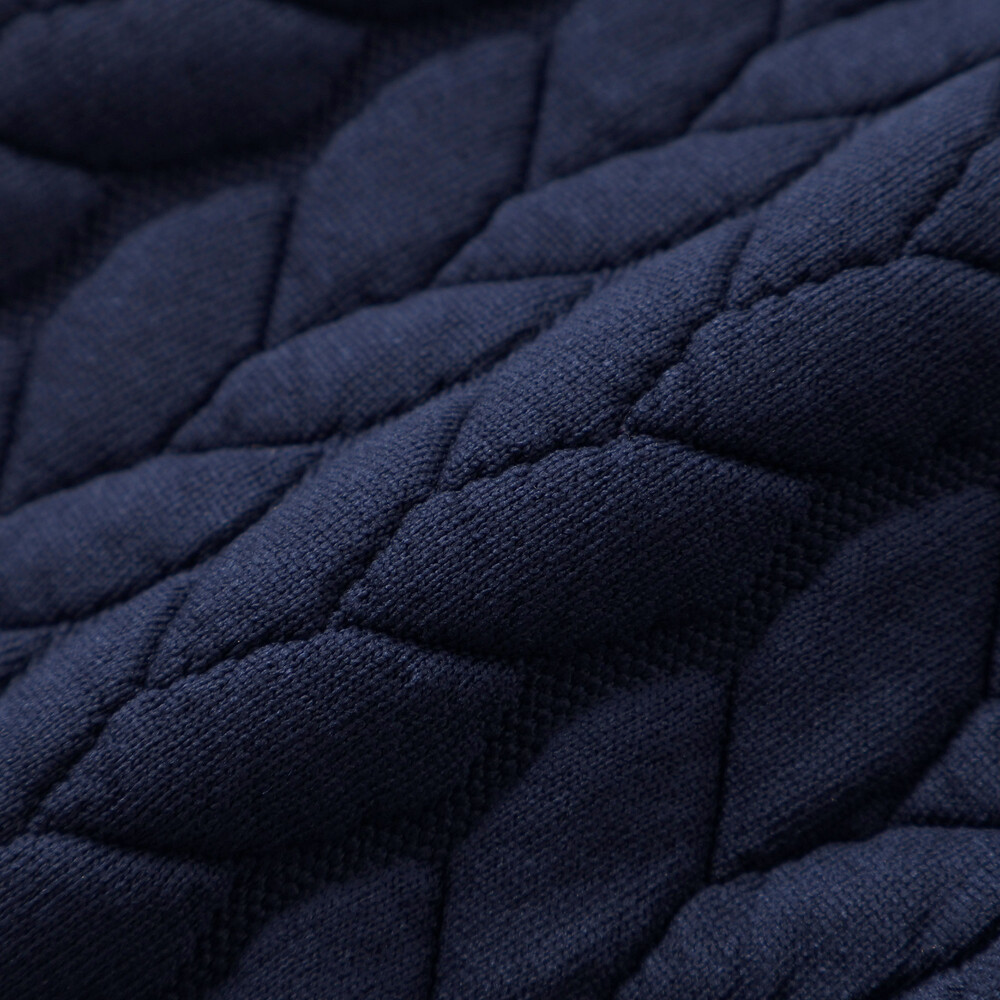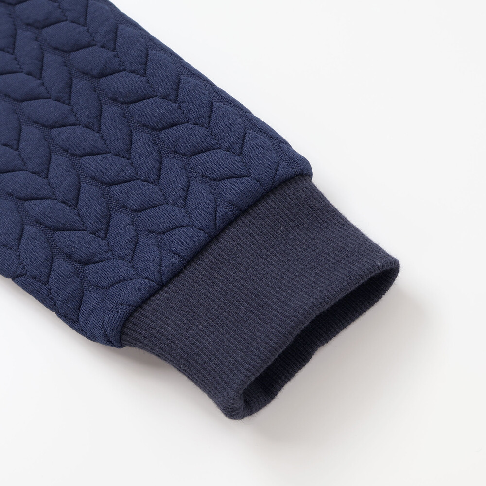 袖はキルトジャガード生地に切り替え、立体感とあたたかみのある印象に。