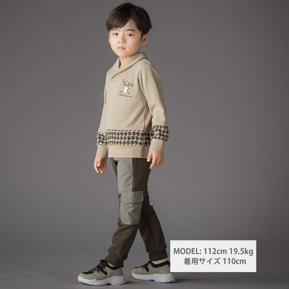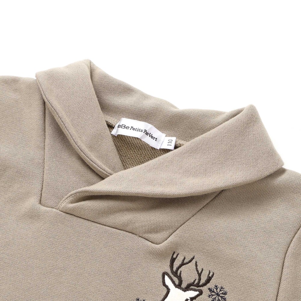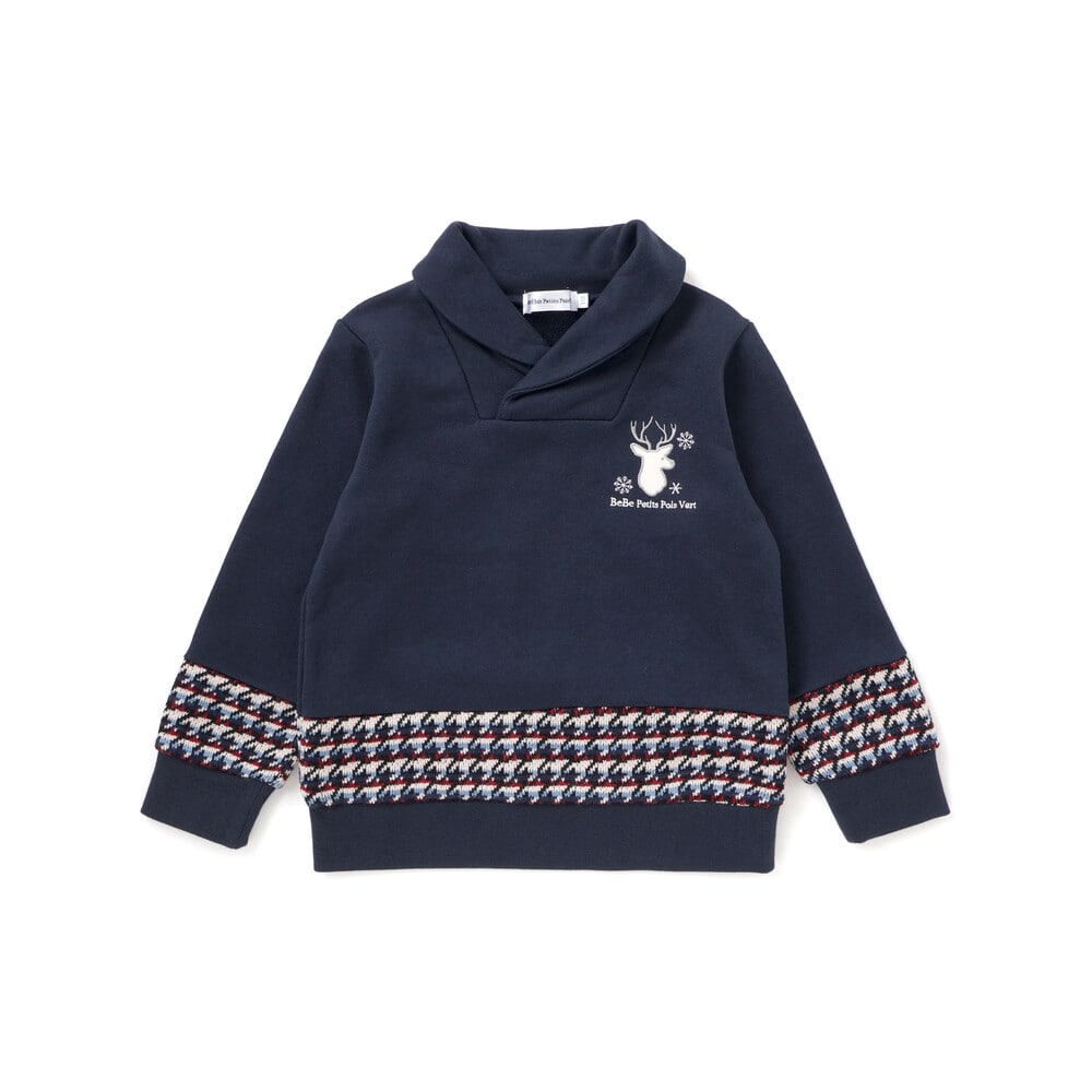 ショールカラーとノルディック柄が冬映えするトナカイモチーフの男の子用裏毛トレーナー。