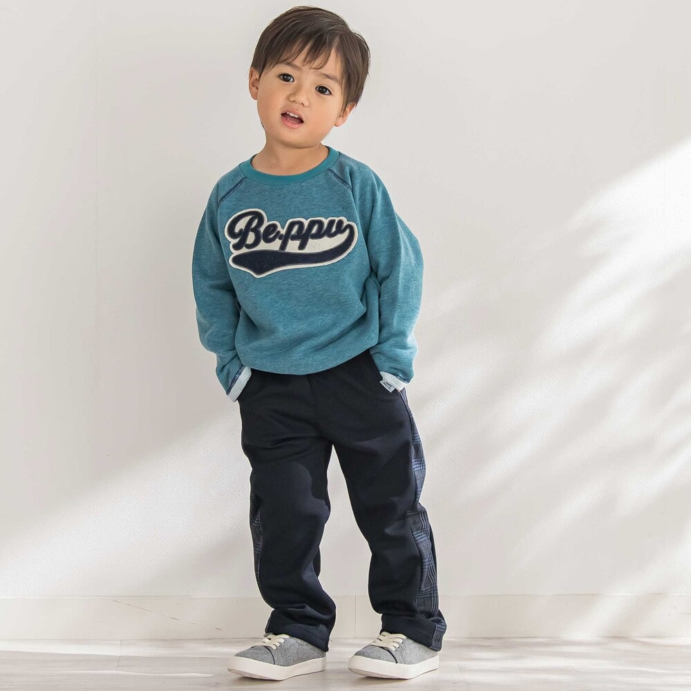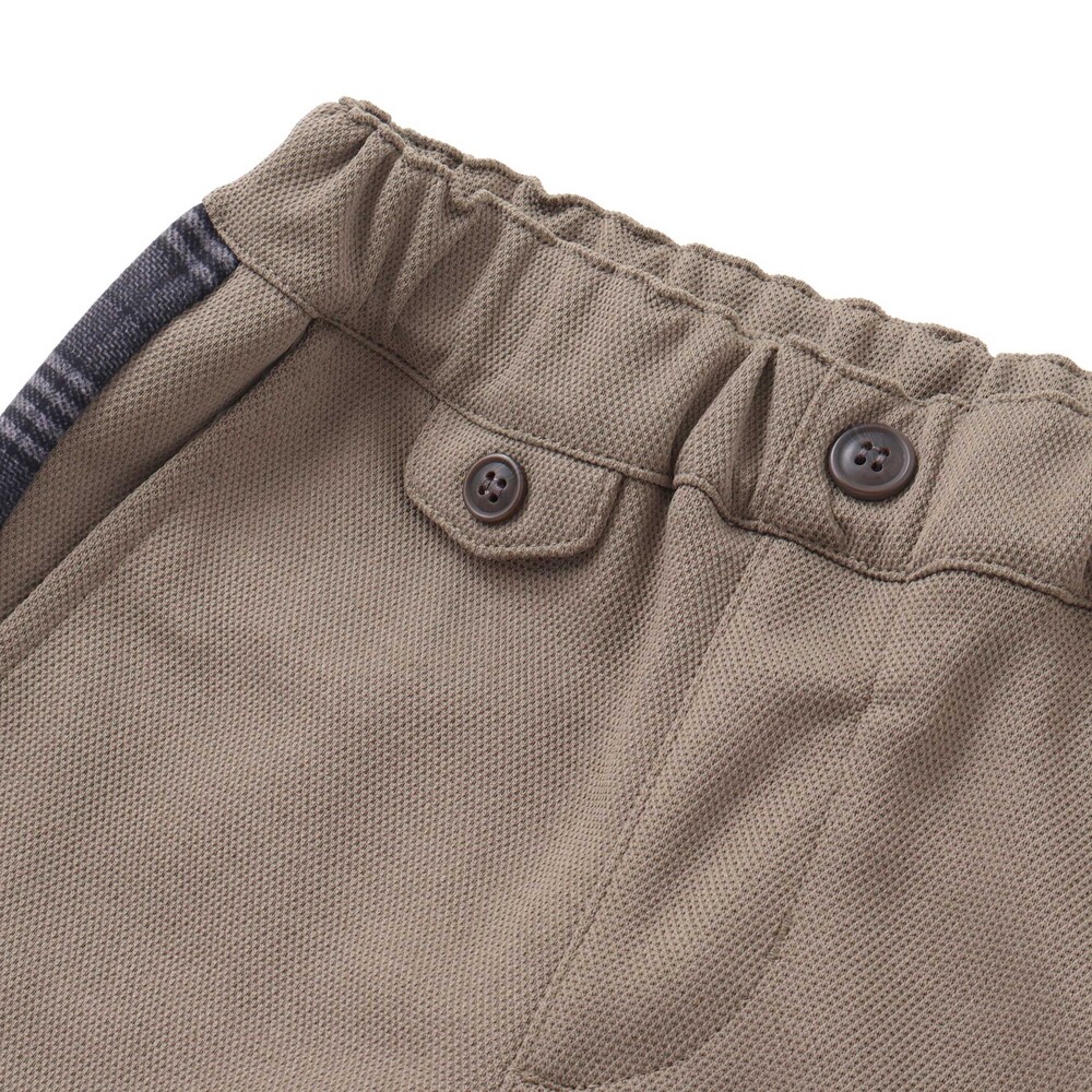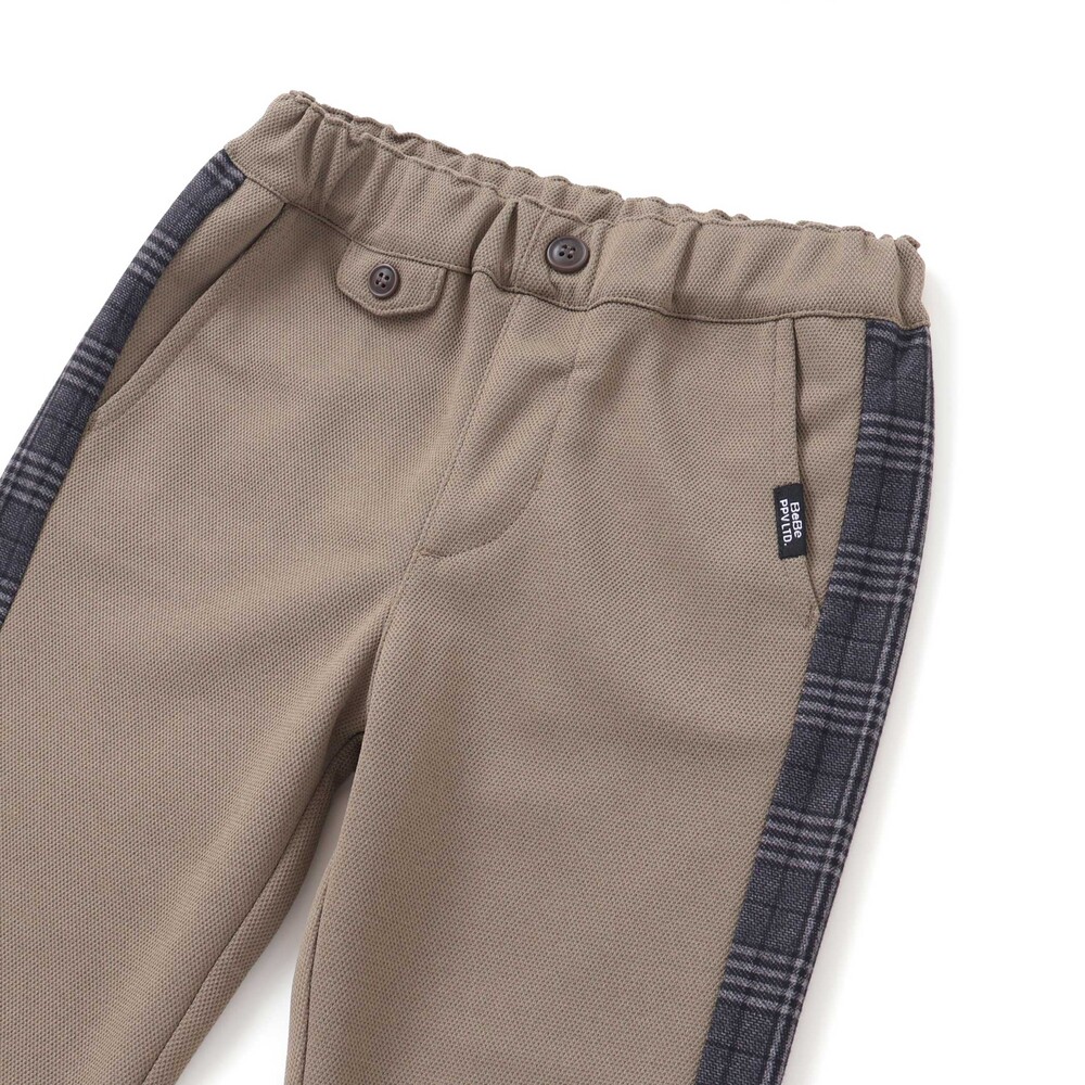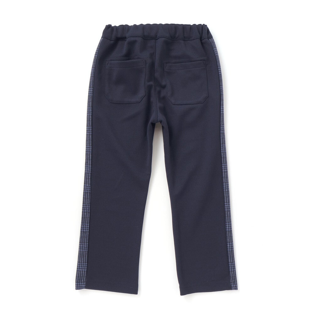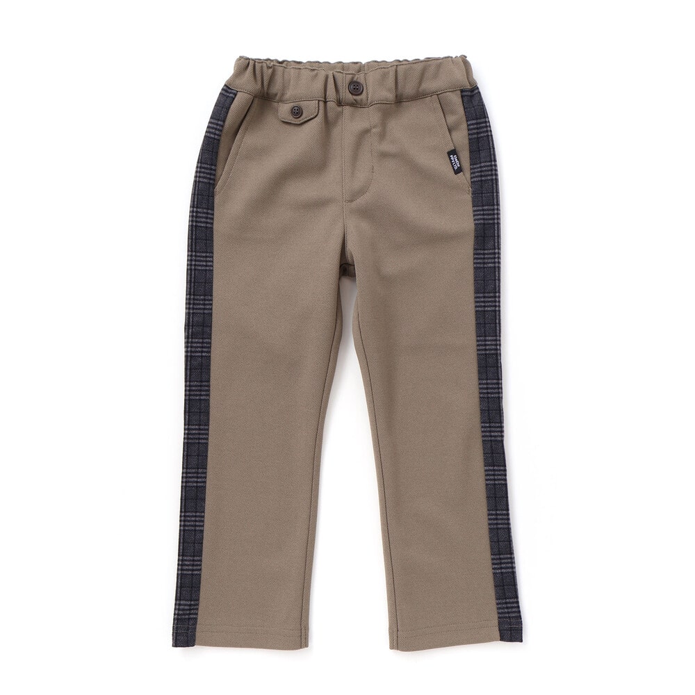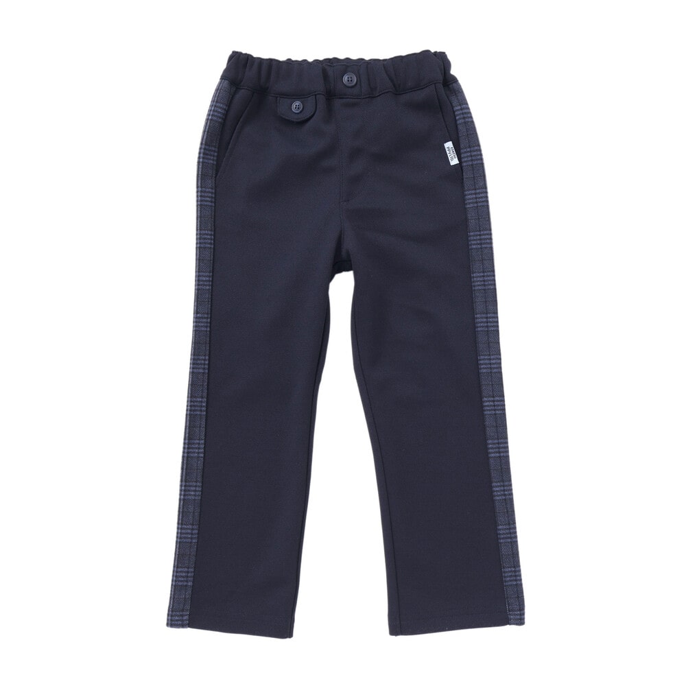 チェックのサイドラインが映える、こだわりディテールの男の子用ロングパンツ。