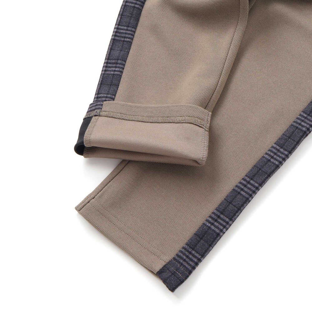 サイドの配色部分には柔らかく伸縮性のあるチェックジャガードのポンチ素材を採用。