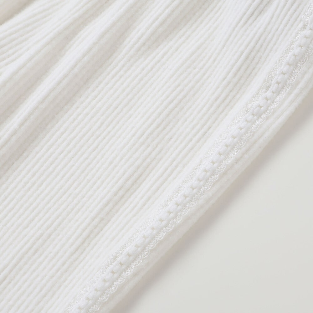太めのリブ素材で縦ラインを強調し、すっきりとした印象に。