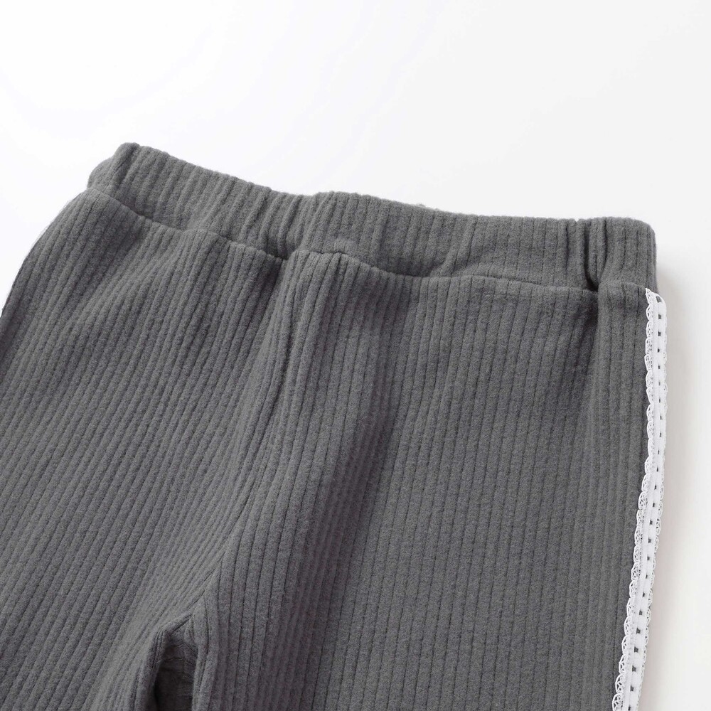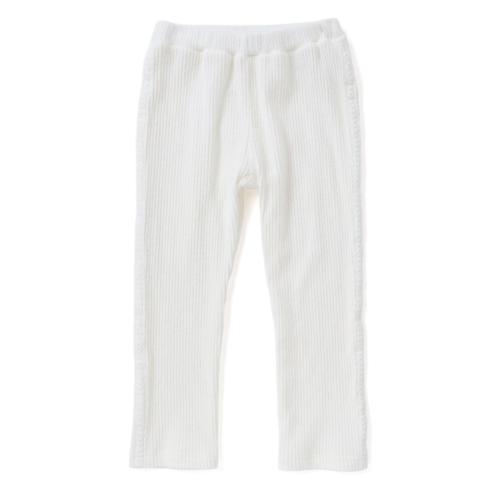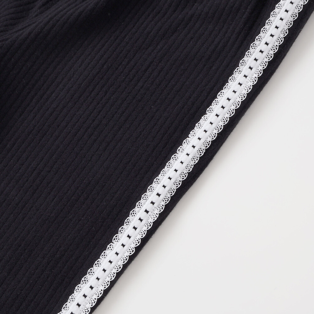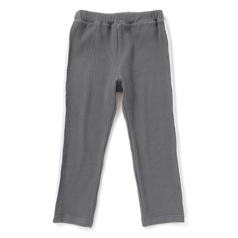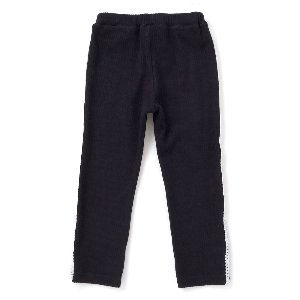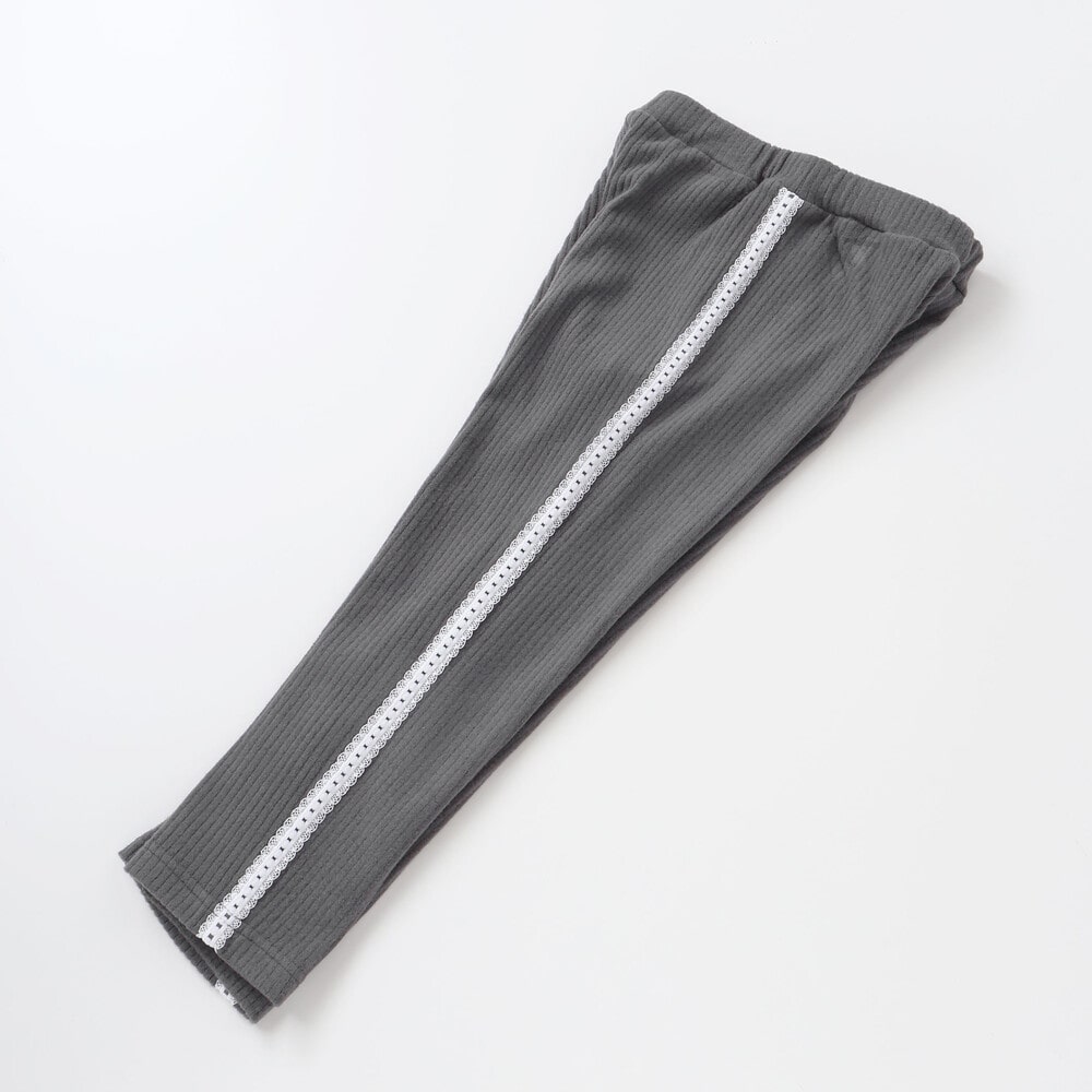 サイドにあしらったレーステープが、シンプルな中にも華やかさを添えるレギンス。