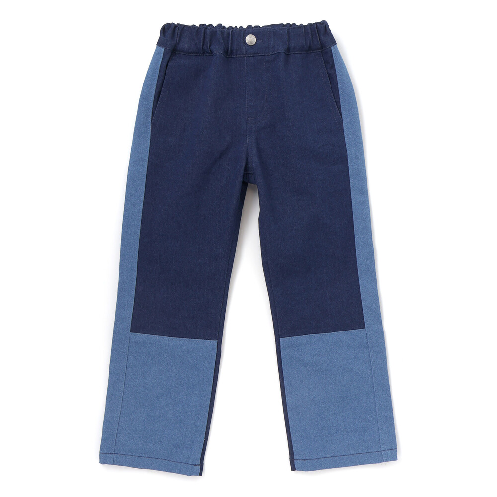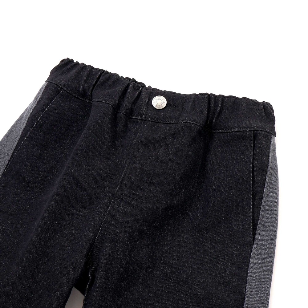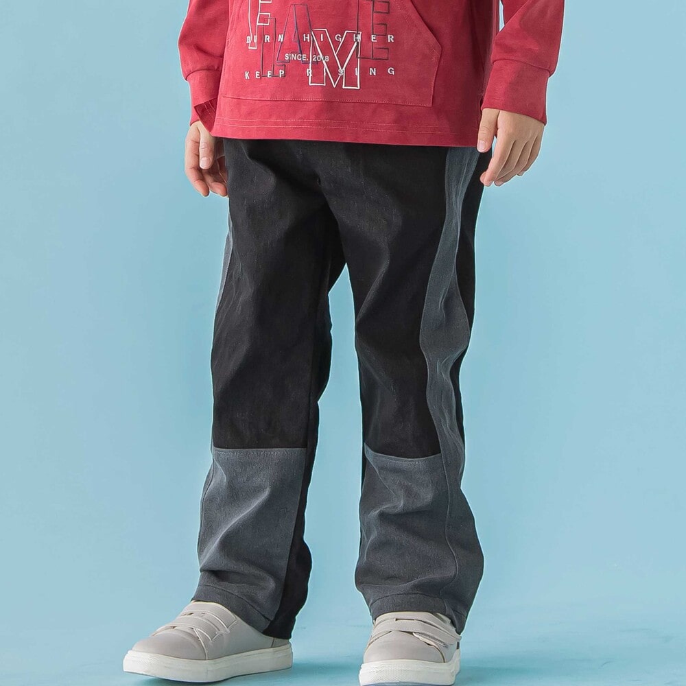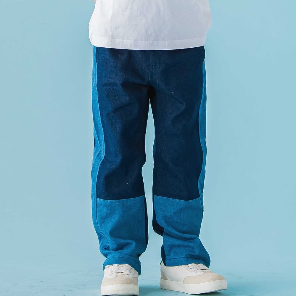 サイドライン切り替えがかっこいい。ストレッチデニムの男の子用カラーブロックパンツ。