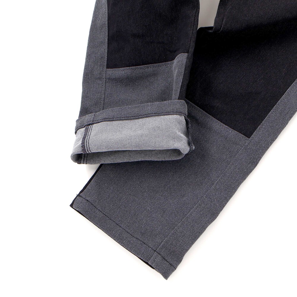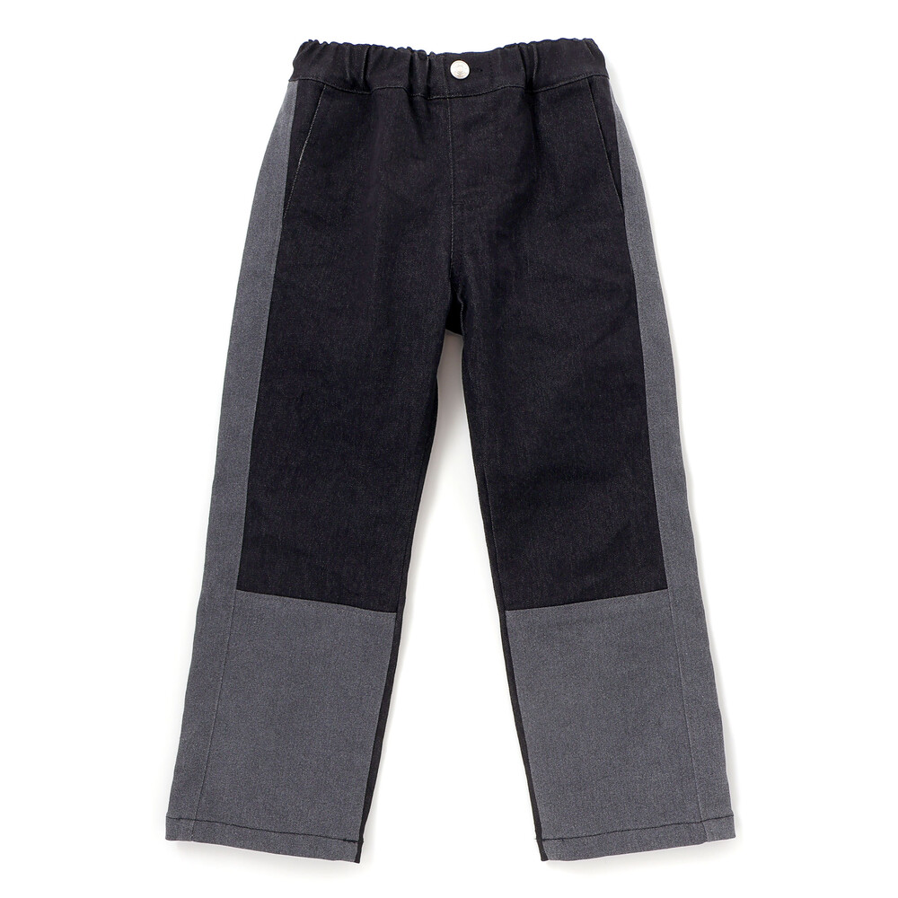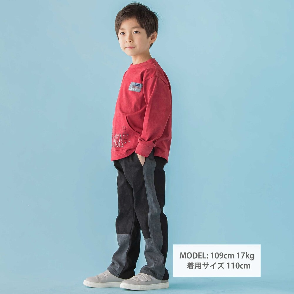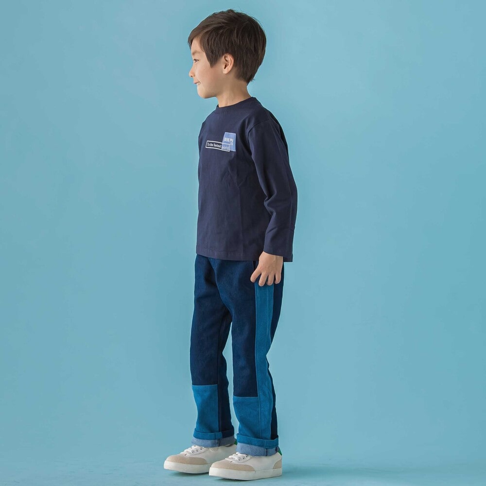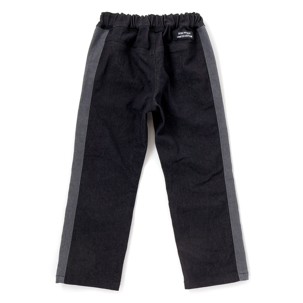サイドライン切り替えがかっこいい。ストレッチデニムの男の子用カラーブロックパンツ。