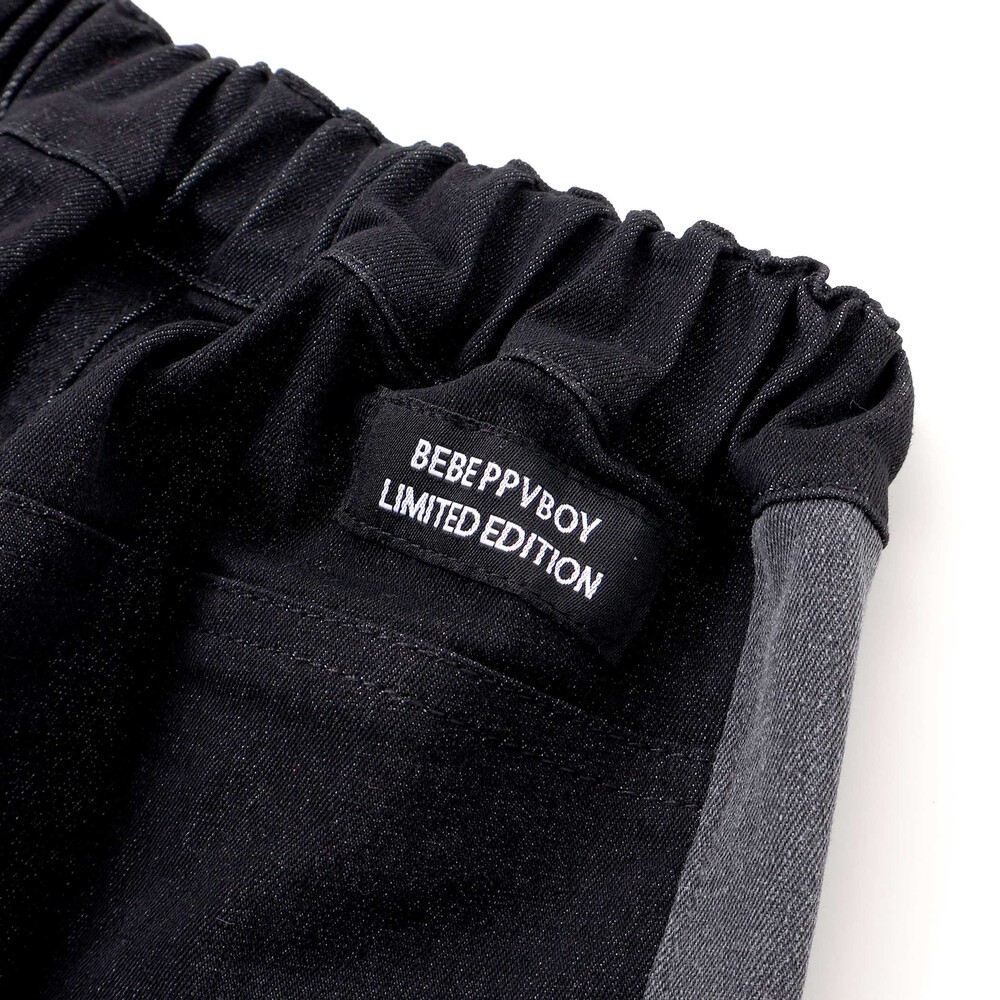 カラーの切り替えデザインが目を引く、男の子用カラーデニムパンツ。