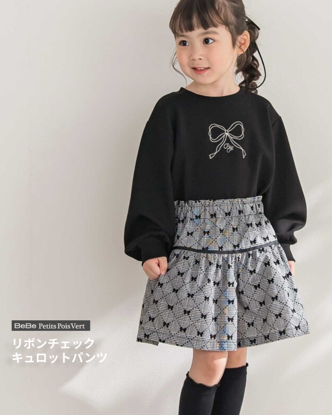 ブラックに映えるリボンとチャームが、甘すぎない可愛さのキュロットパンツ。