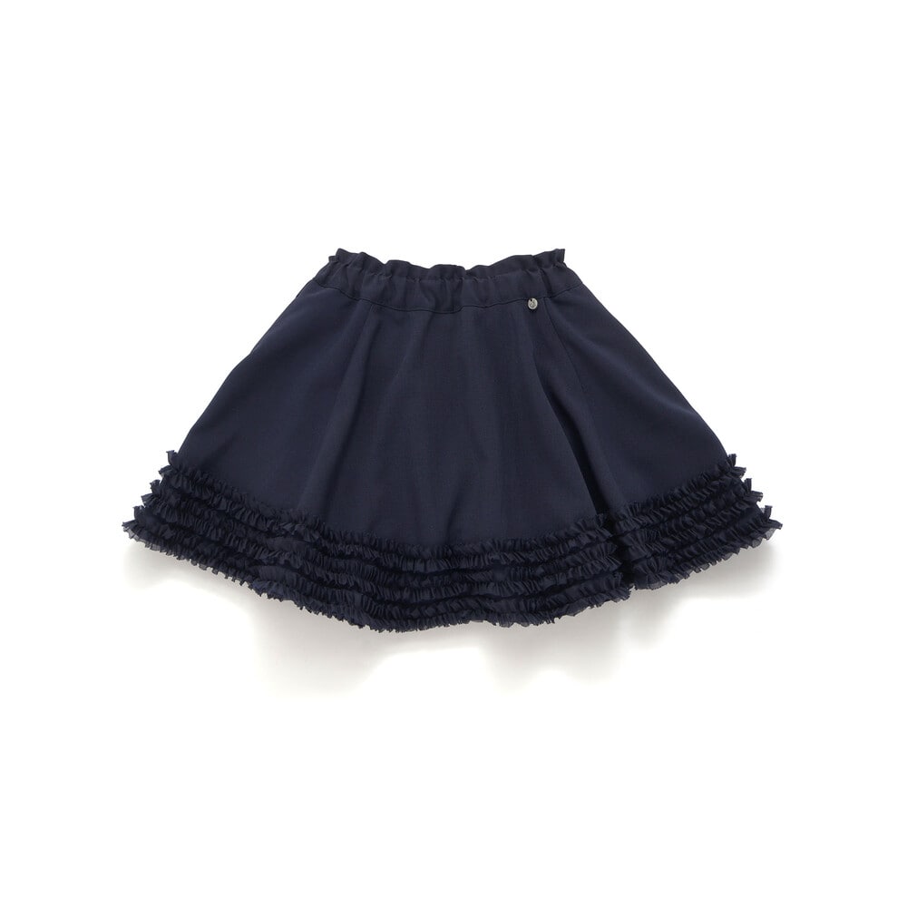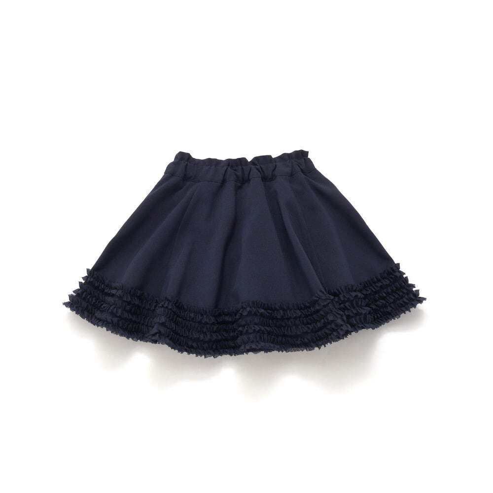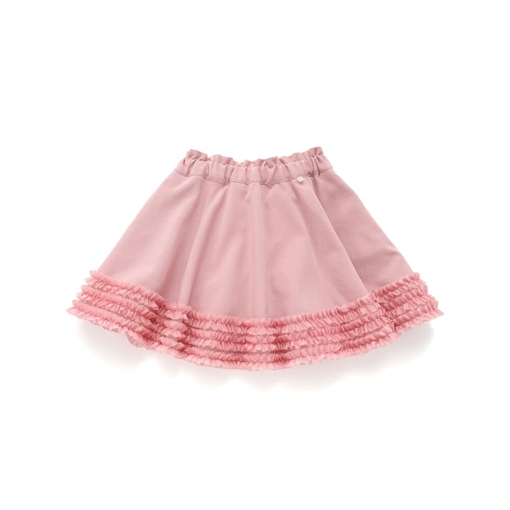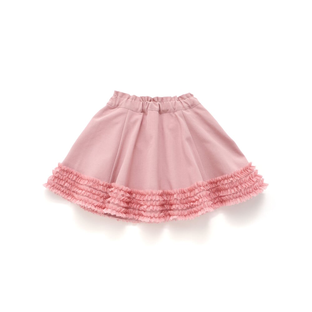 裾にあしらったオーガンジーの3段フリルがふわっと揺れる、女の子らしさたっぷりのフレアスカート。