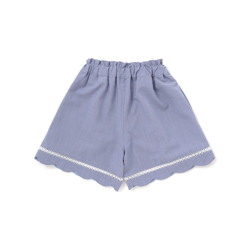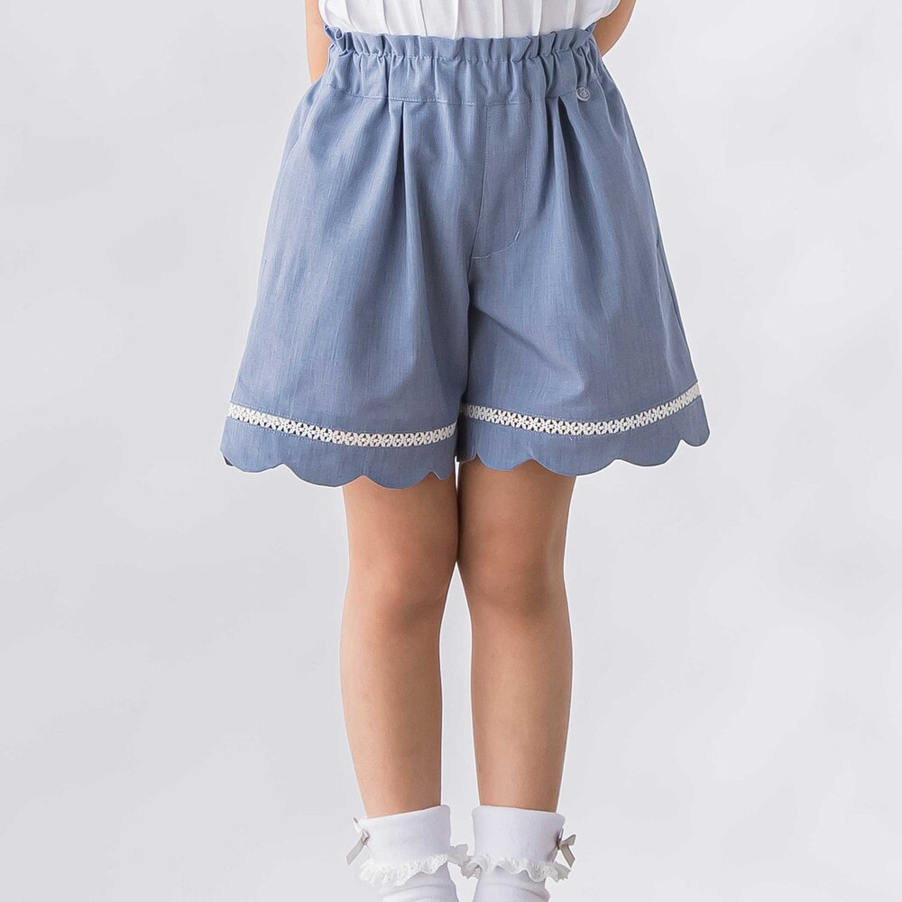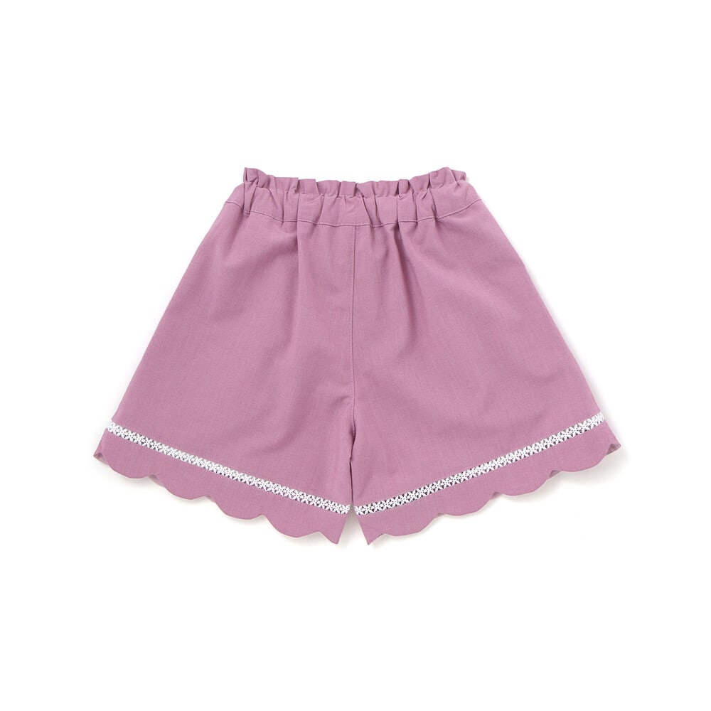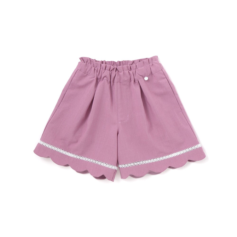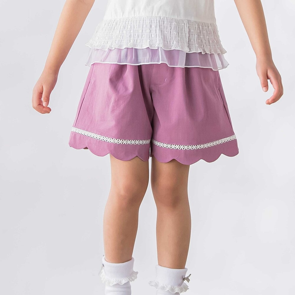 裾に施したスカラップデザインとはしごレースが、女の子らしさを引き立てるショートパンツ。