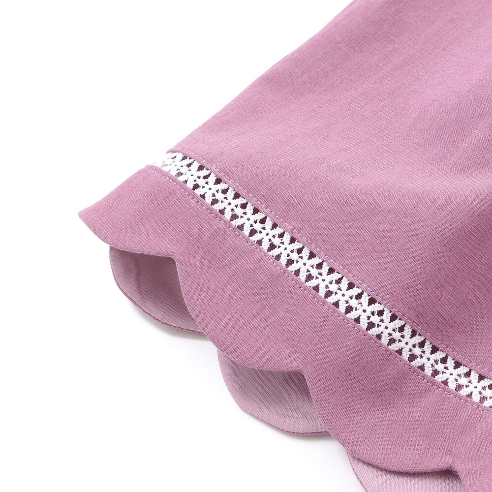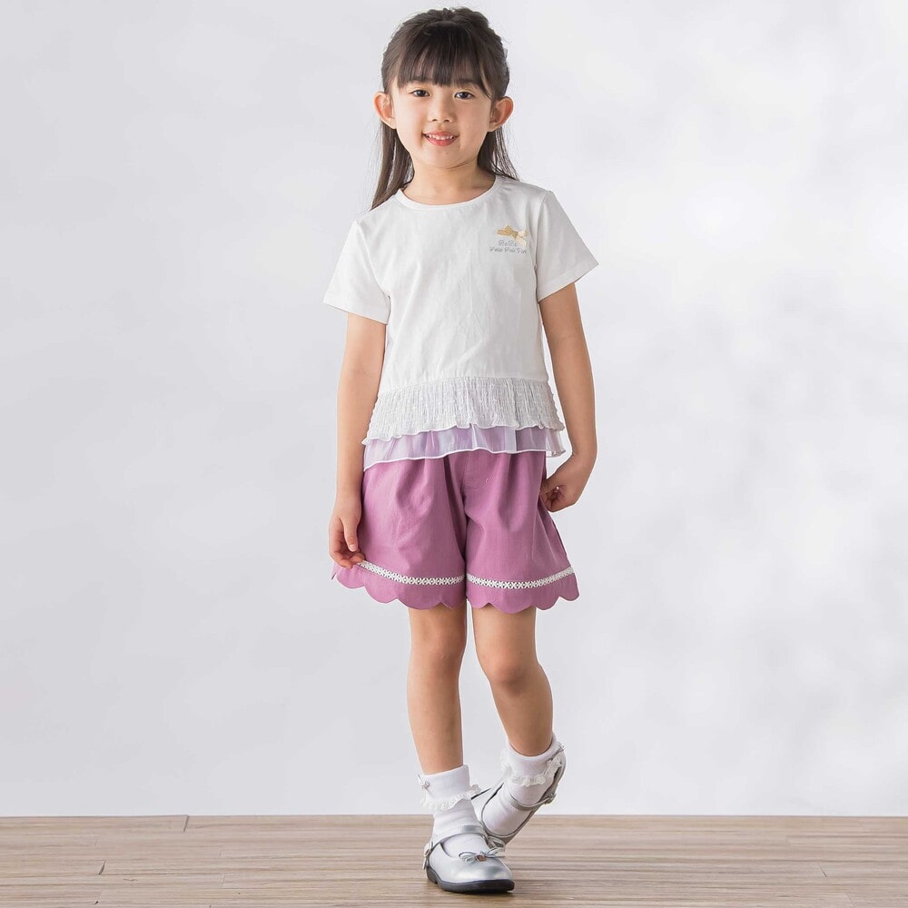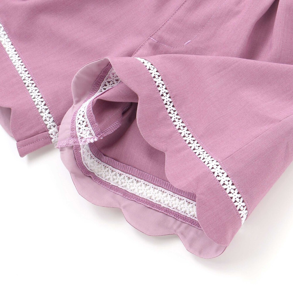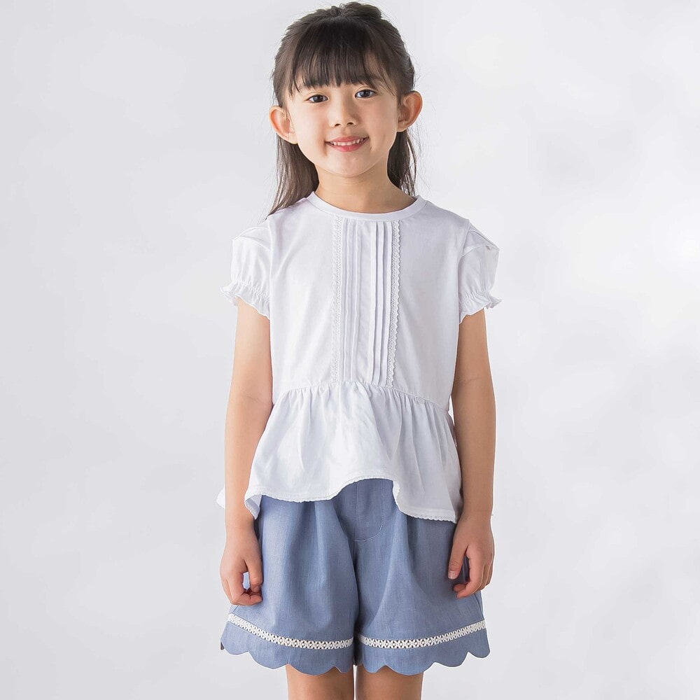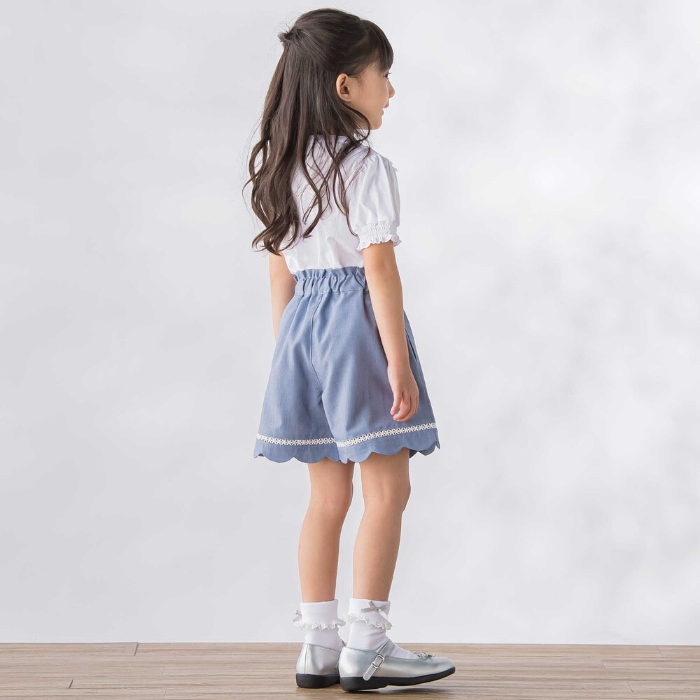 裾に施したスカラップデザインとはしごレースが、女の子らしさを引き立てるショートパンツ。