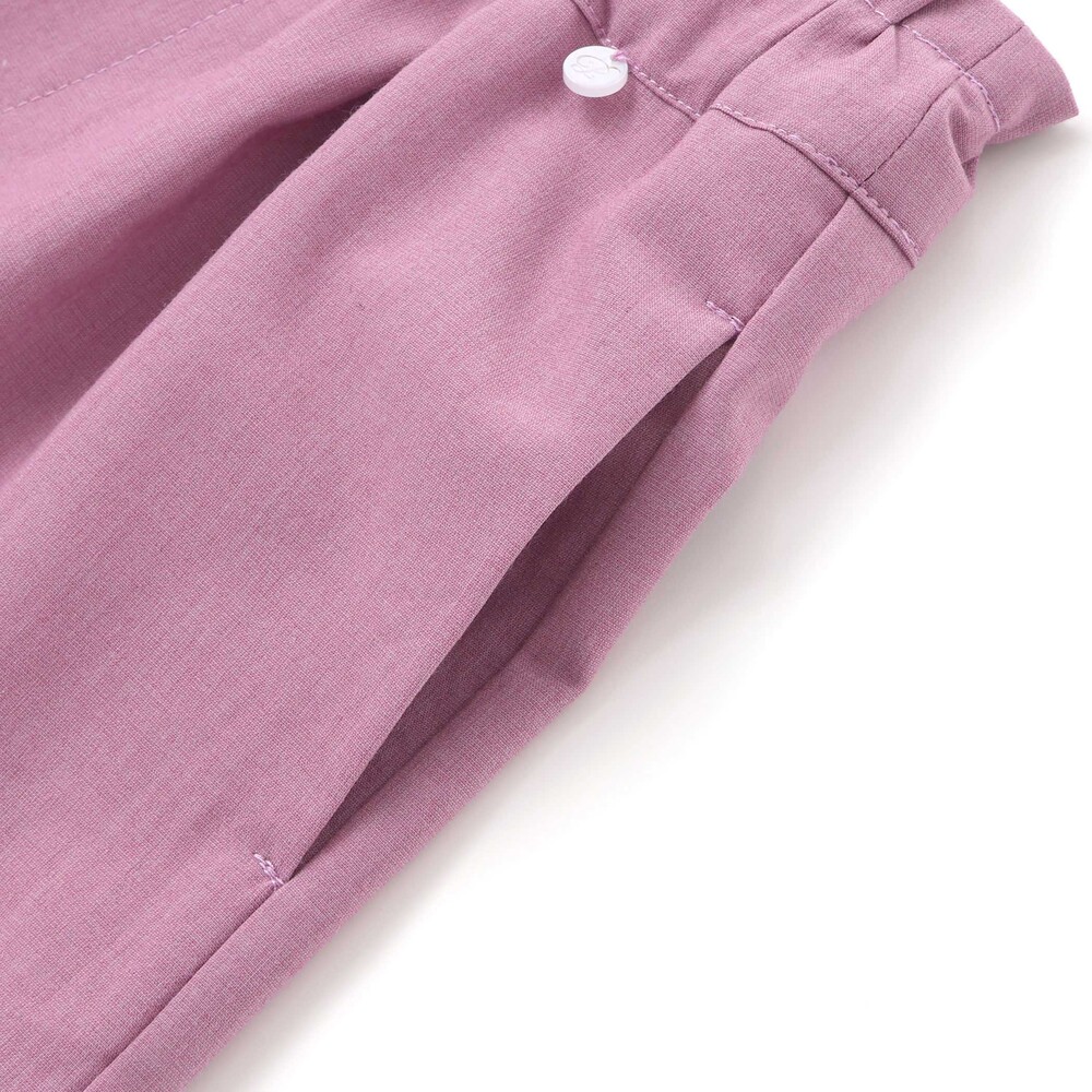 布帛素材を使用し、さらっとした肌触りで汗ばむ季節でも快適な着心地。