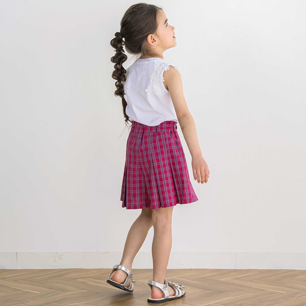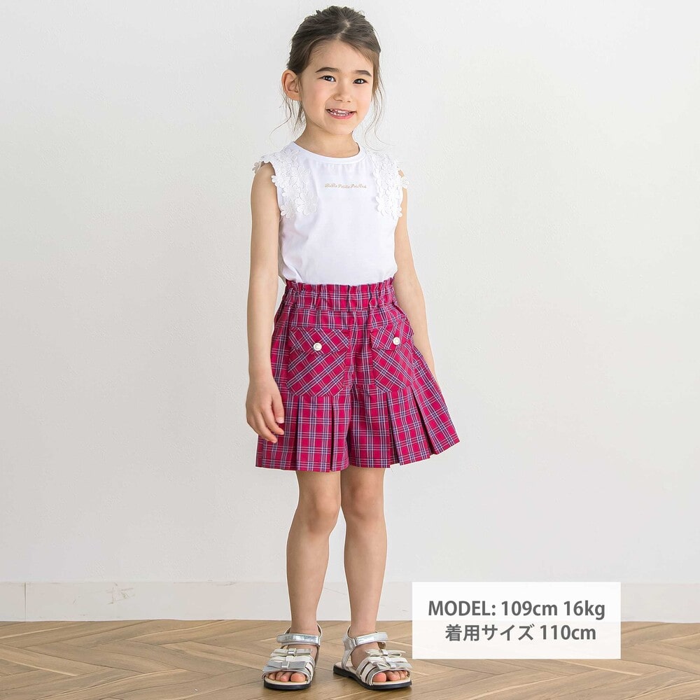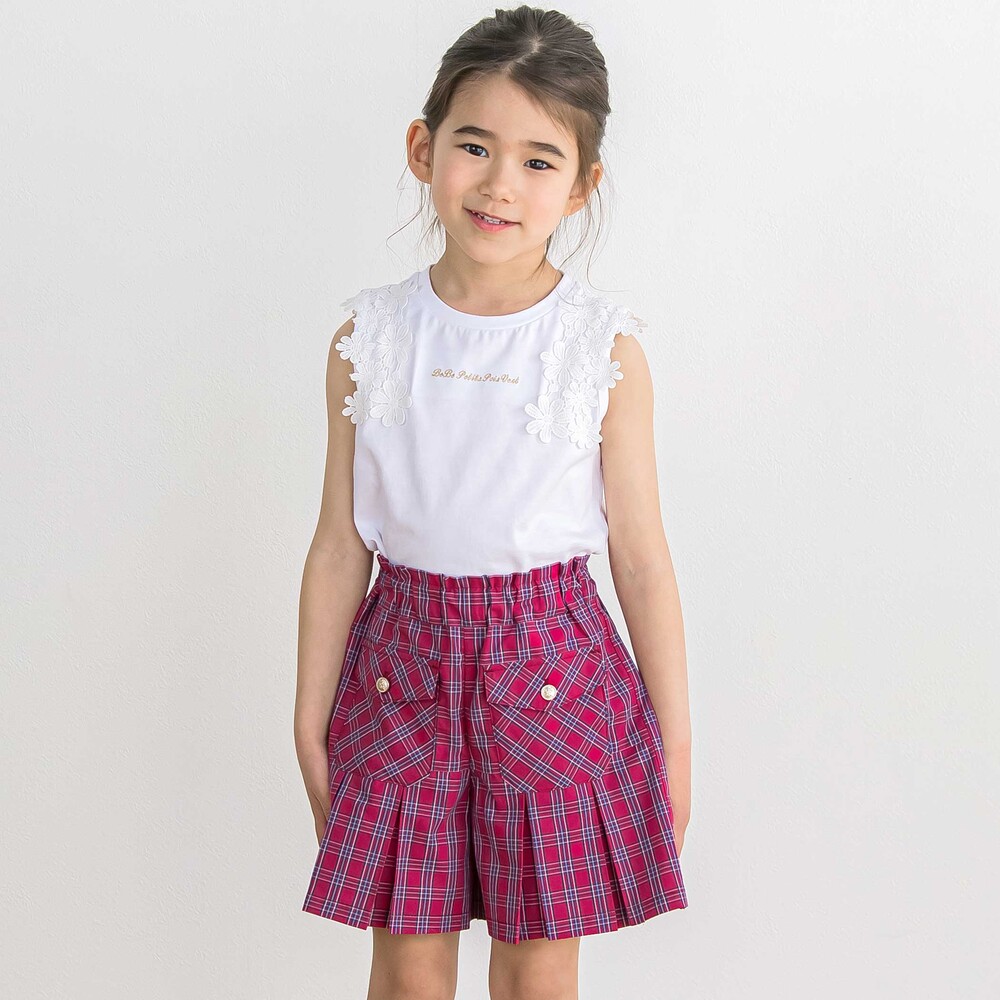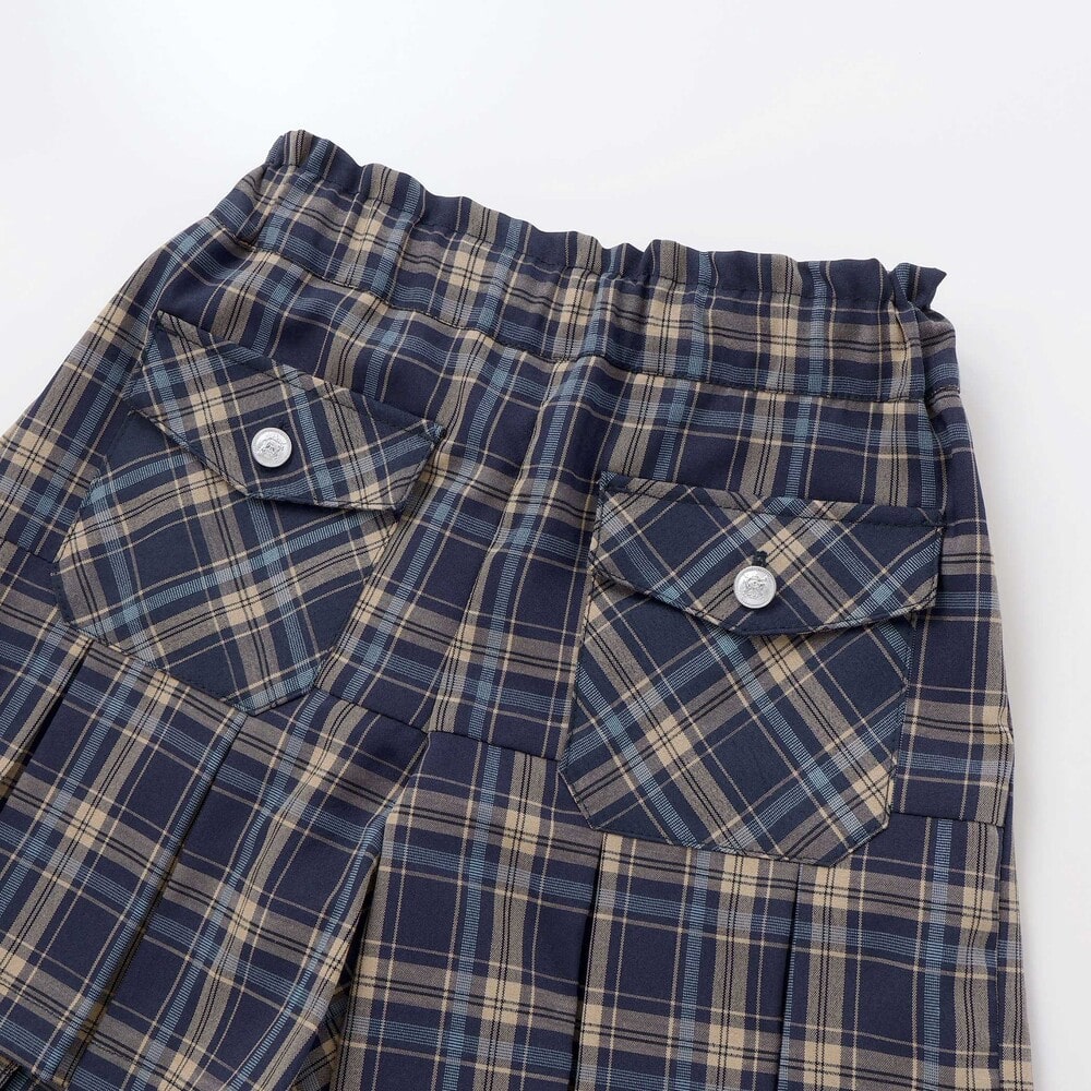 華やかなチェック柄が目を引くスカート見えするキュロットパンツ。