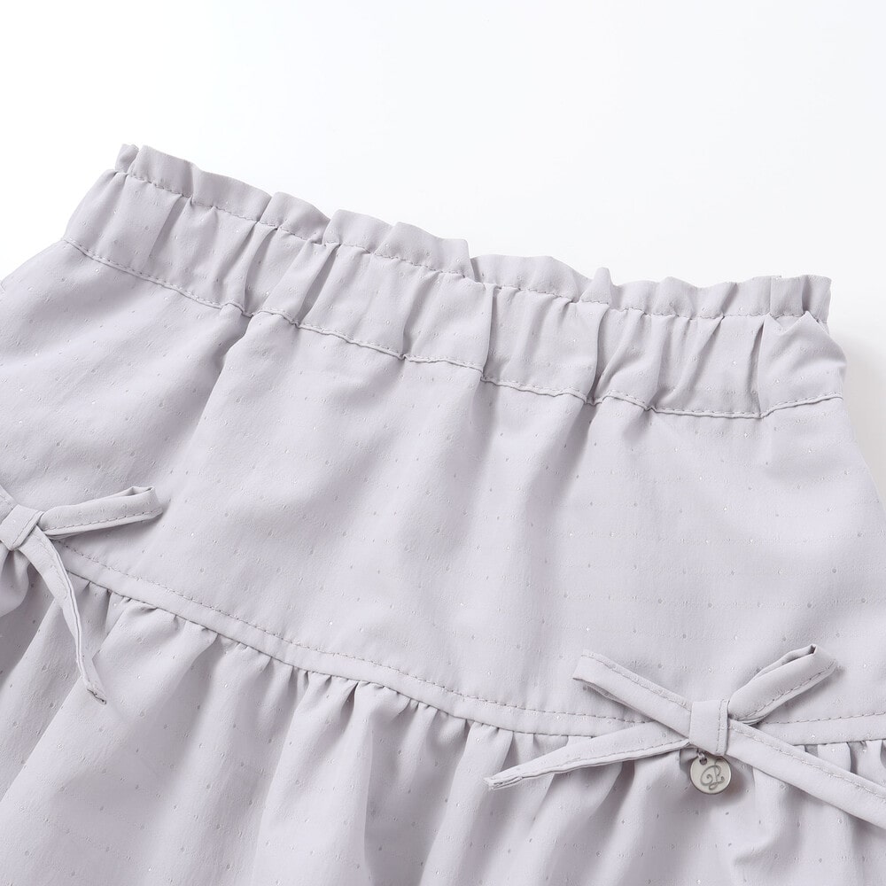左のリボンには丸チャームを添え、品よいアクセントとしてコーディネートを華やかに。
