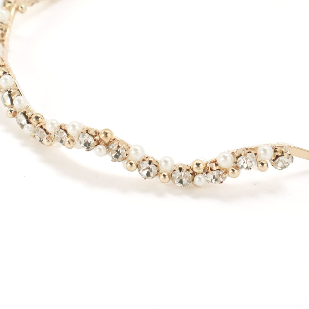パールとラインストーンを贅沢に組み合わせ、動くたびにキラキラと輝きを放ちます。