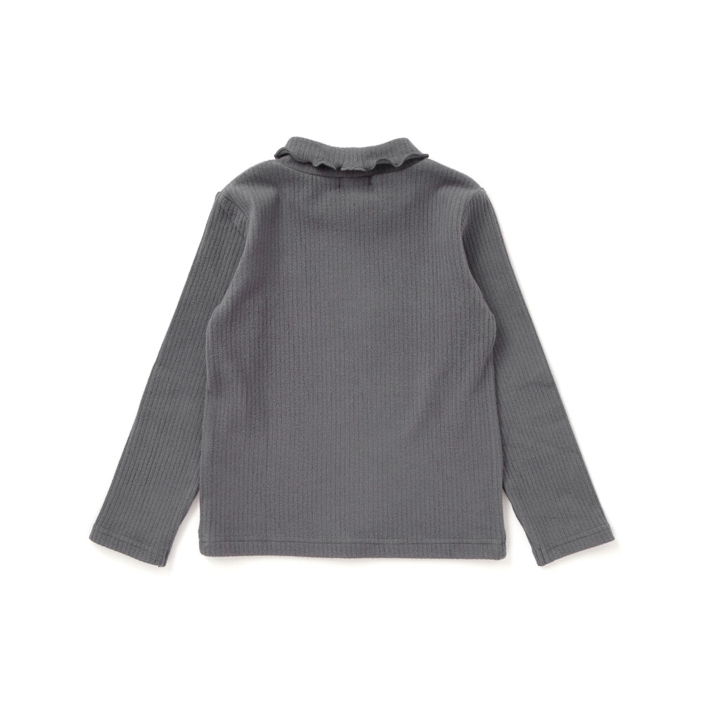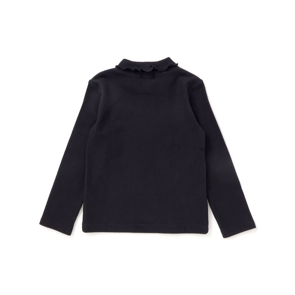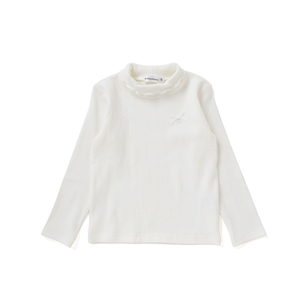 折り返しハイネック×リボンチャームが可愛い、女の子用起毛リブトップス