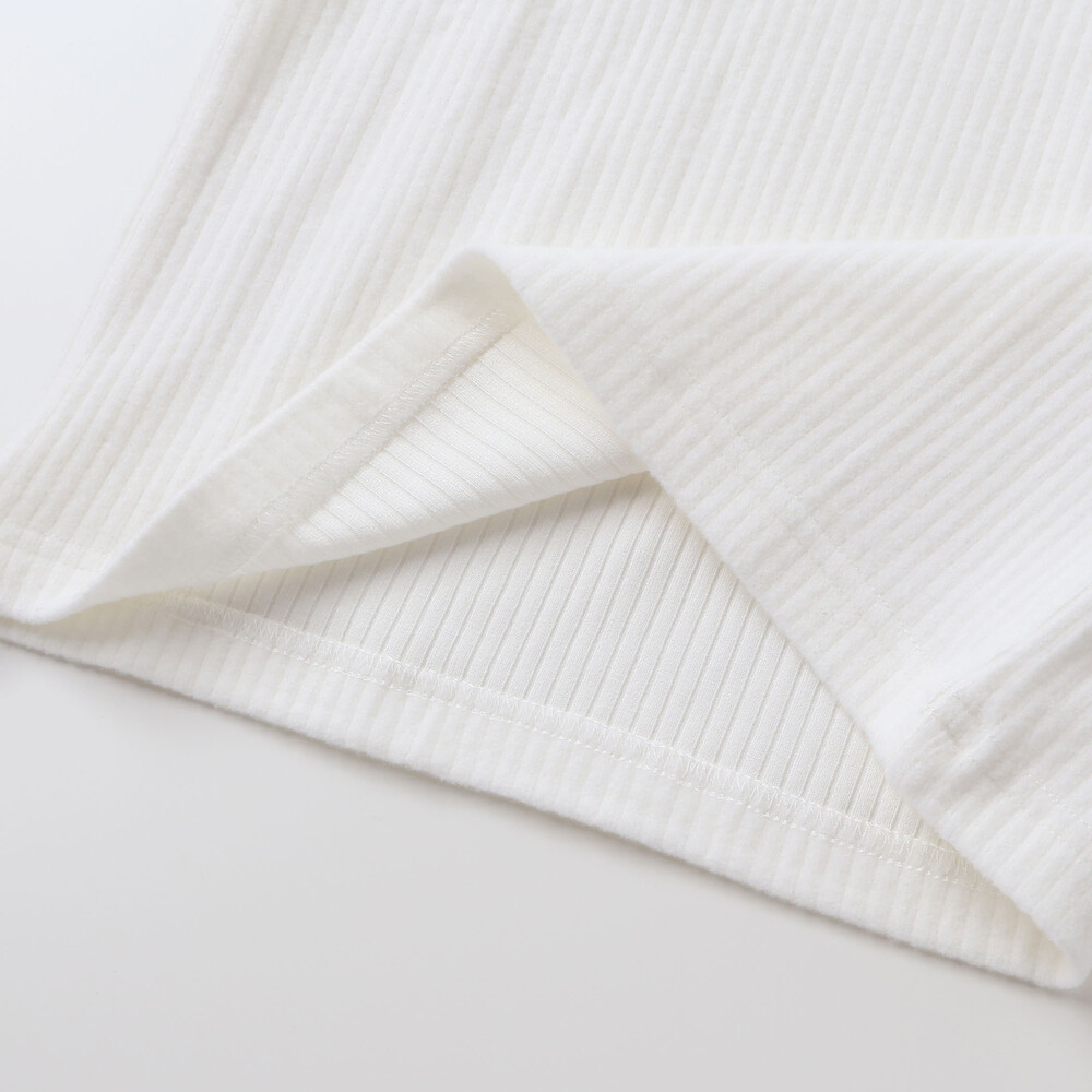表面に起毛をかけた太リブ素材を使用し、やわらかくあたたかみのある肌ざわり。