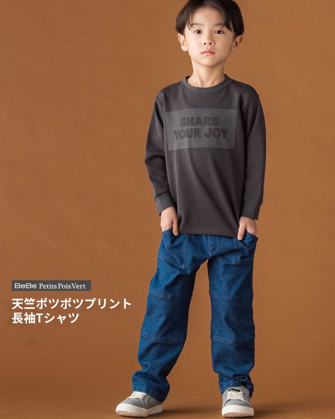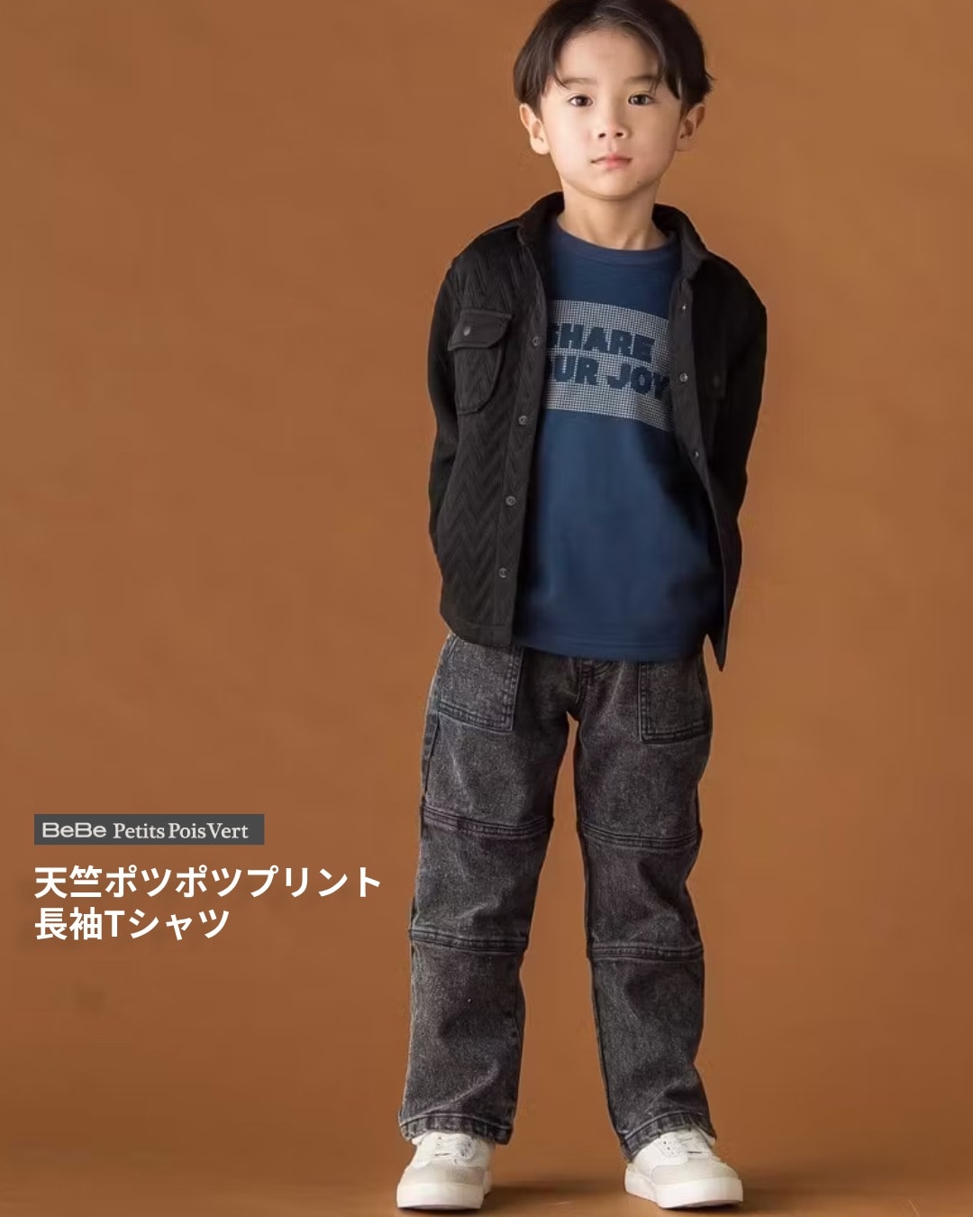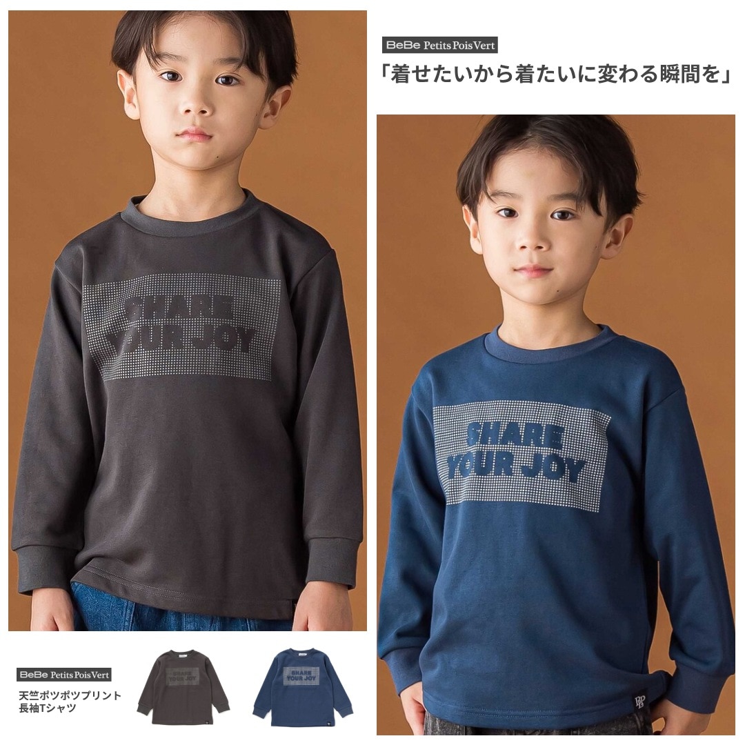 ポツポツプリント×軽やか素材でデイリーに使える男の子用長袖Tシャツ。