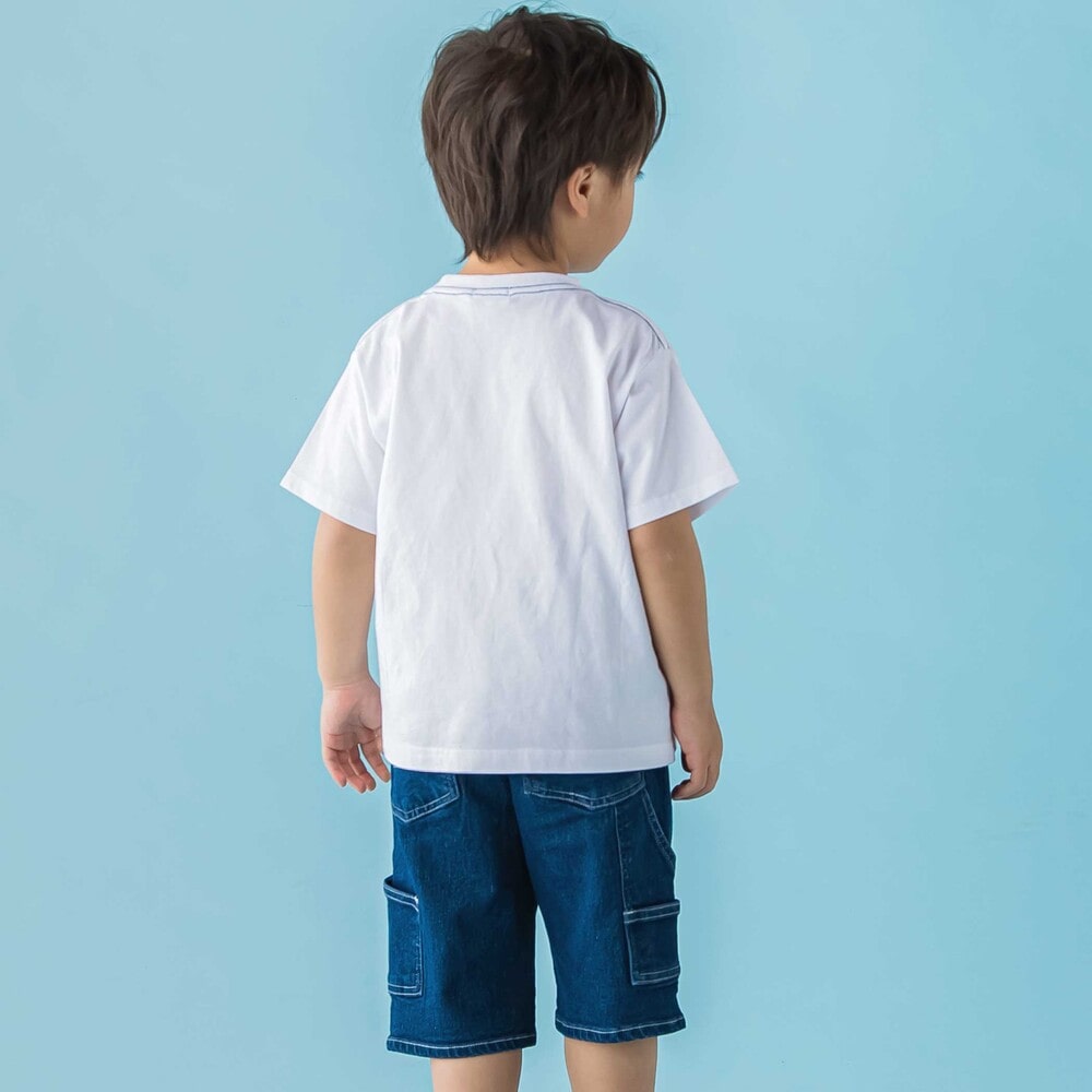 かすれプリント×刺しゅうで立体感。モノトーンに映える男の子用Tシャツ。