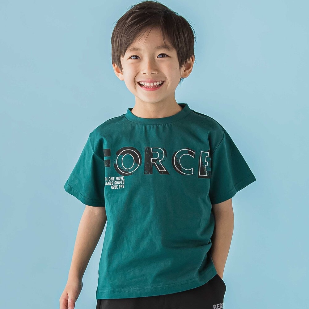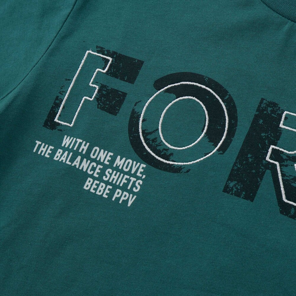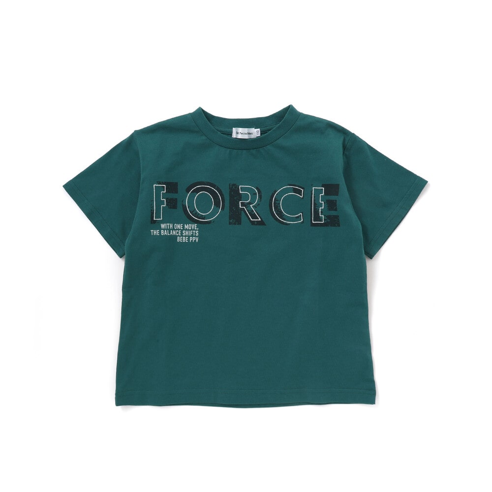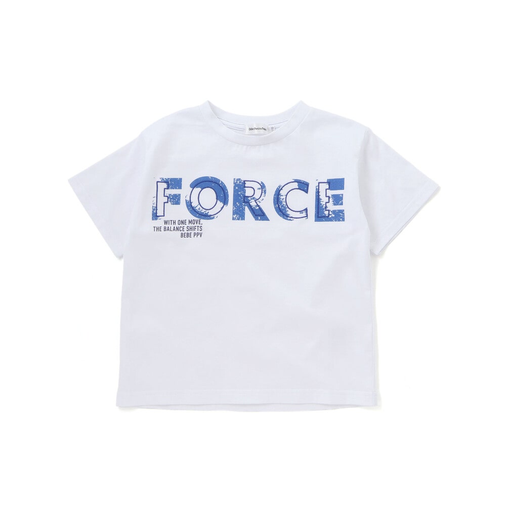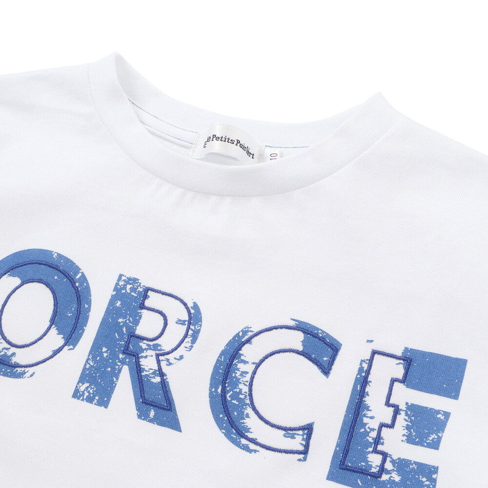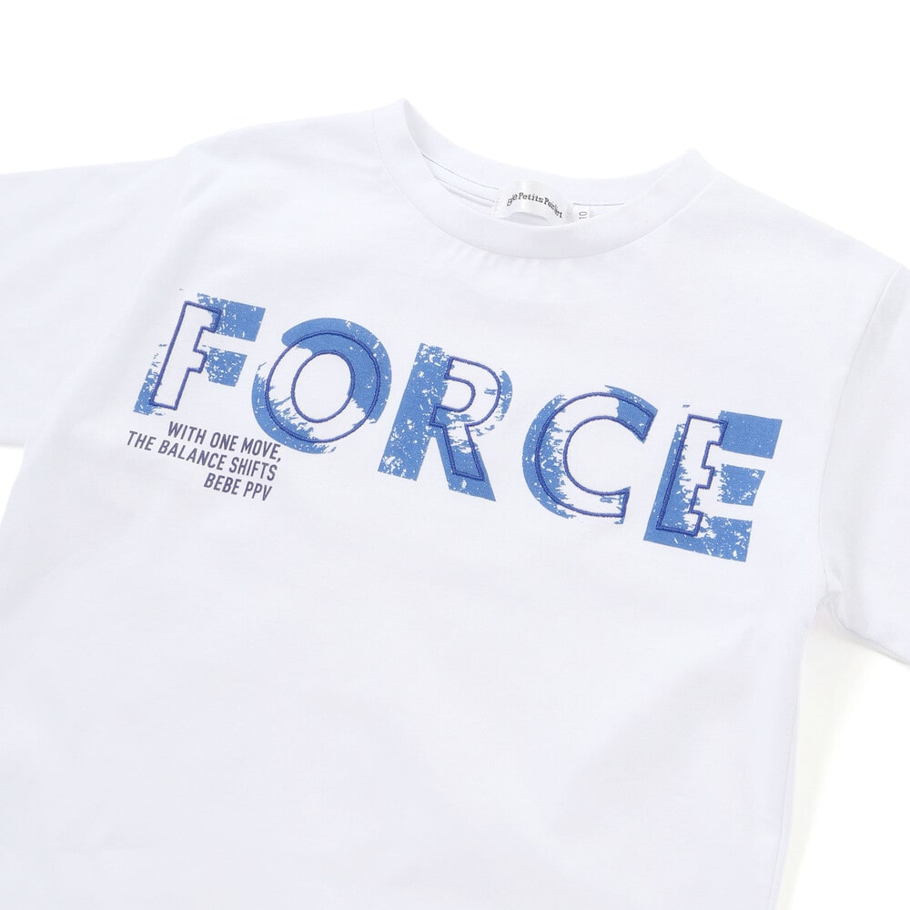 かすれ加工の “FORCE” に、上から刺しゅうを重ねた立体グラフィックがポイント。