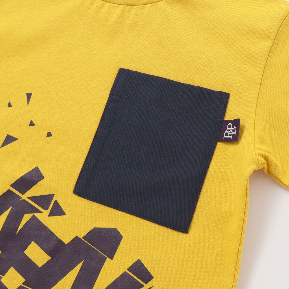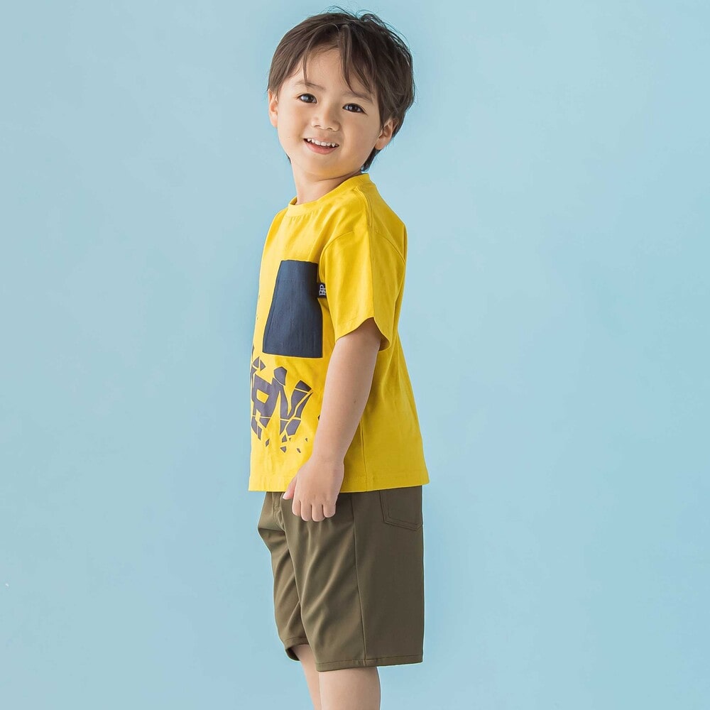 立体ポケット×メッセージプリントが映えるクールな男の子用Tシャツ。
